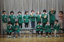 12月1日(月):師走に入り、今年のカレンダーも、あと1枚を残すのみとなりました。今日は、来週の生活発表会に向けて、どの学年もステージを使って練習をしました。年少は歌と合奏の練習で、もも1組は歌「ふうせんは空のともだち」、合奏「ふしぎなポケット」、もも2組は歌「白くまのジェンカ」、合奏「ゆきのこぼうず」の練習を頑張りました。年中も歌と合奏の練習で、うめ組は歌「おばけのたまご」、合奏「ドレミのうた」、さくら組は歌「そうだったらいいのにな」、合奏「ミッキーマウスマーチ」の練習を友だちと協力しながら取り組み、元気な歌声や楽しそうな楽器の音色が響いていました。年長は、オペレッタ「ヘンゼルとグレーテル」の練習をしたり、発表会当日に使う「お菓子の家」の装飾をしたり、クリスマスのオーナメントづくりをしたりしました。
