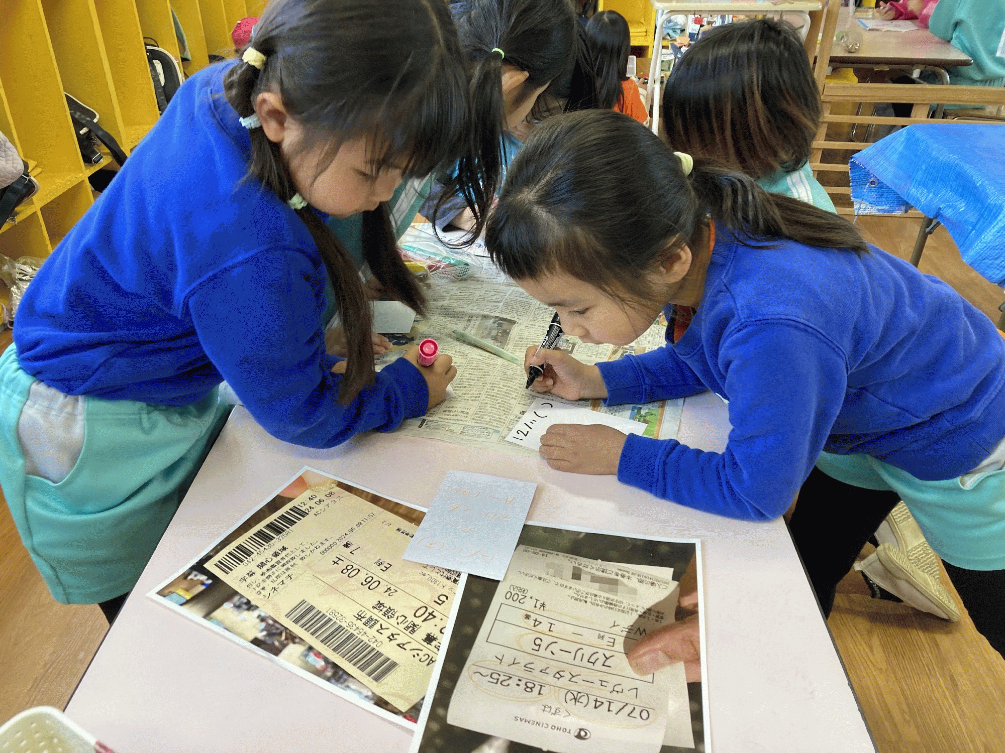 7月頃から映画館ごっこをして遊んでいた一部の子ども達。10月のお泊まり会が終わり「えいがやらないの〜?」と何人かの子から声が挙がっていました。