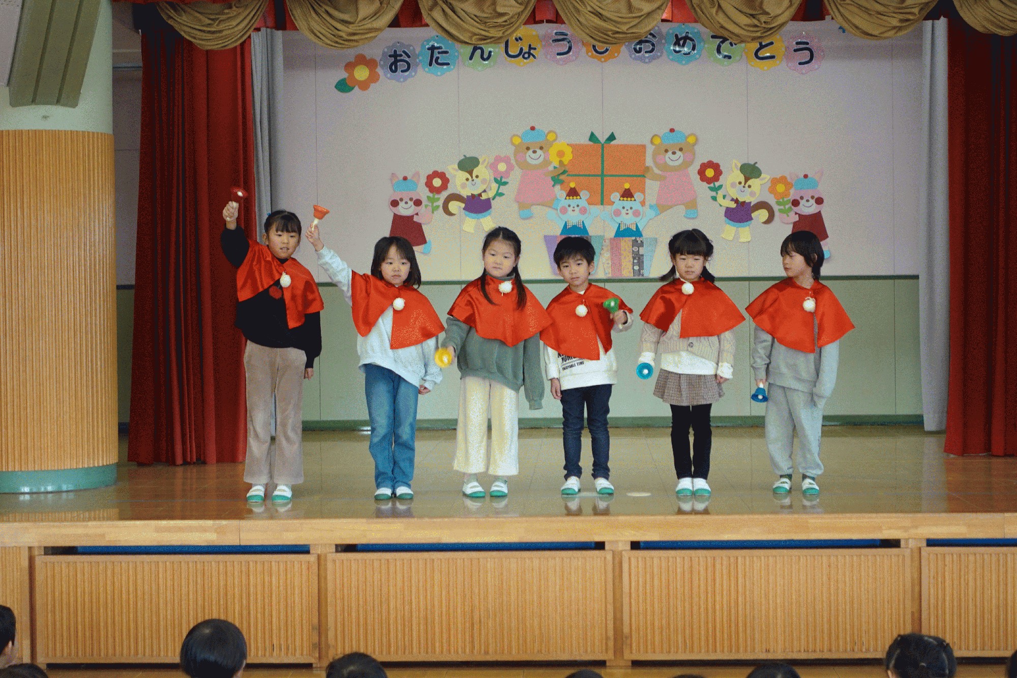 12月19日(金):今日は、12月生まれの子ども達の誕生会を行いました。12月が誕生日の園児は、年少が3人、年中が2名、年長が2名でした。