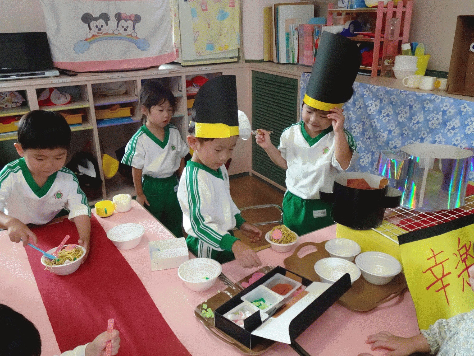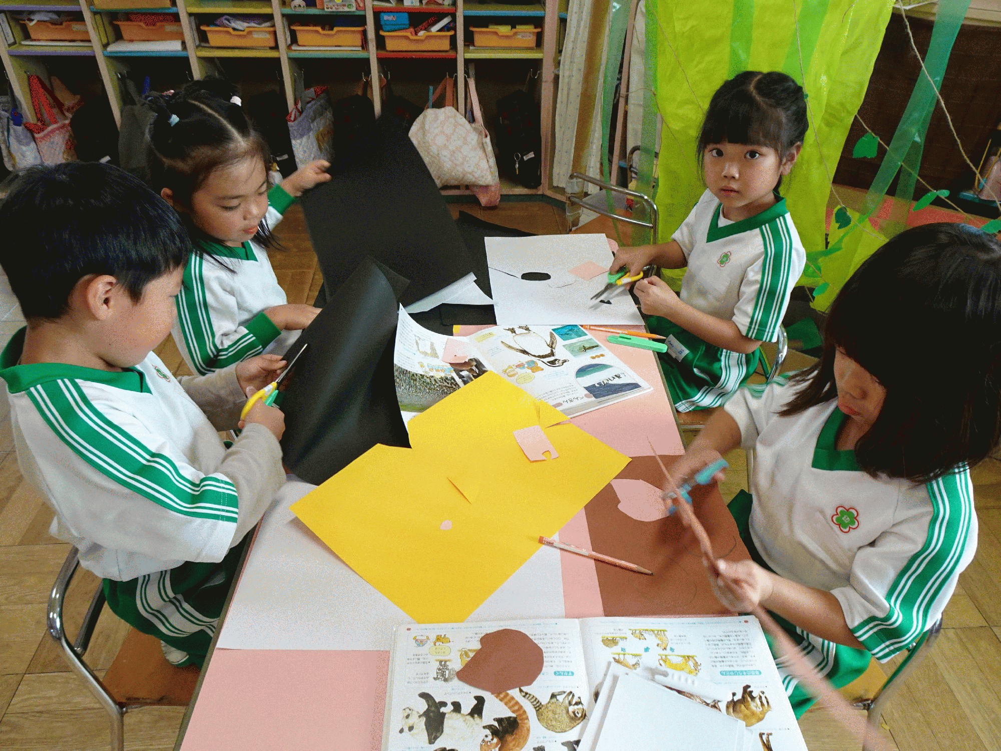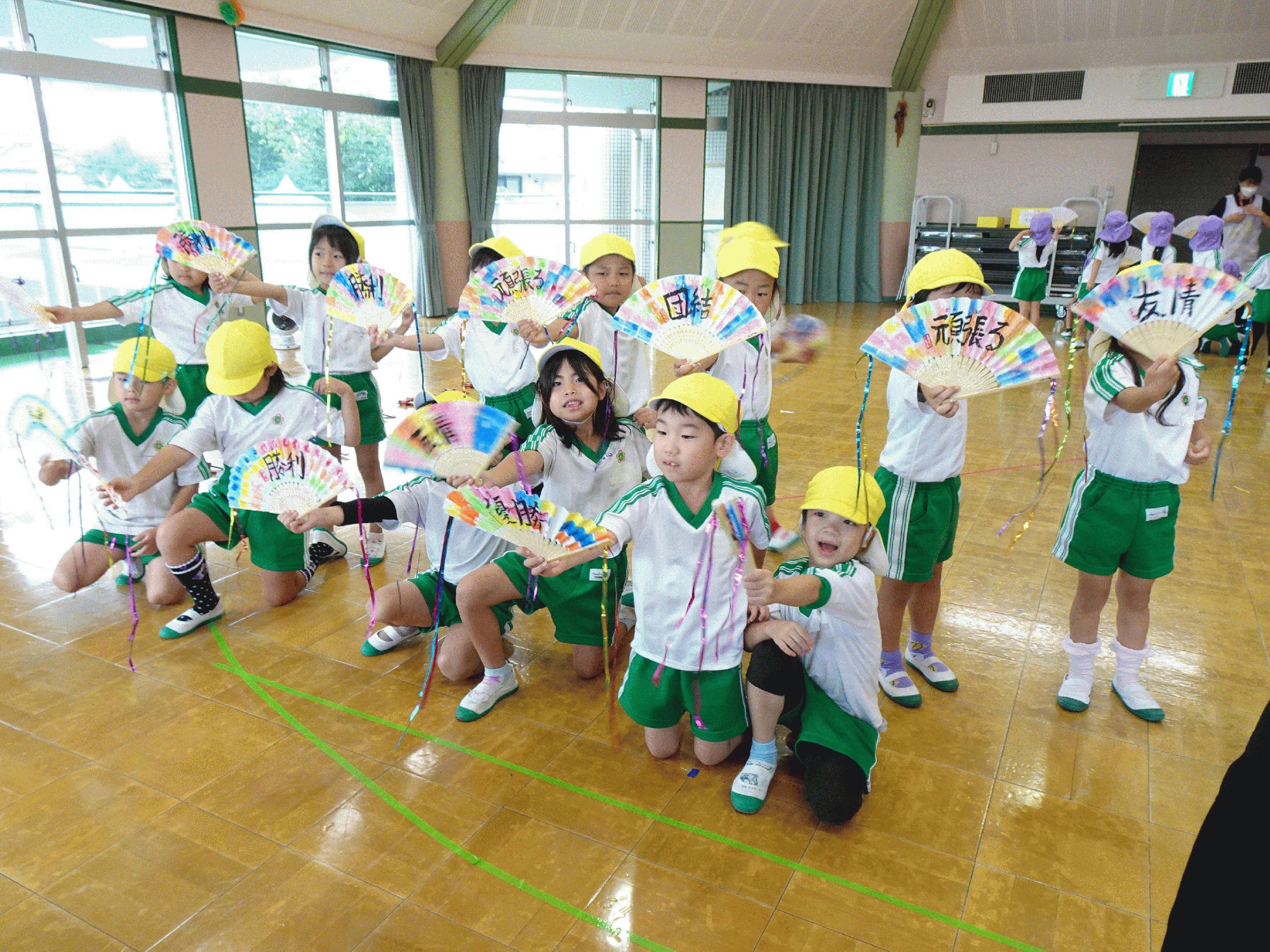 10月1日(水):10月に入り、「衣替え」の時期となりました。今日は雨天でしたが、今週末の運動会を控え、年長は、2階の遊戯室で遊戯「ひらりと桜」、組体操「心・技・体」の練習に取り組みました。