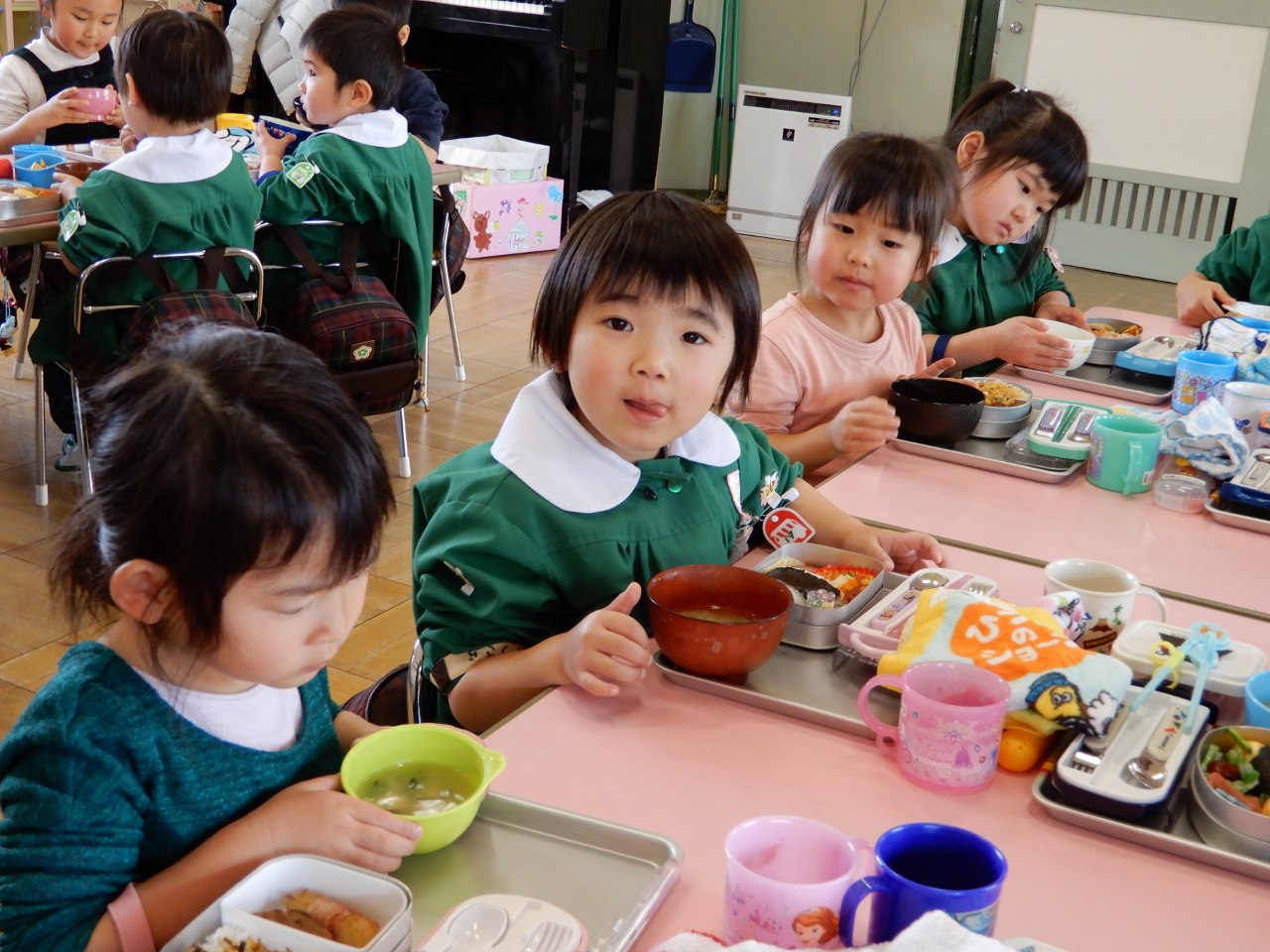 1月21日、園のみどり畑で収穫したネギを使い、味噌汁パーティを行ないました。また当日は、年長が収穫した大根で漬けた「たくあん」も添えられ好評でした。