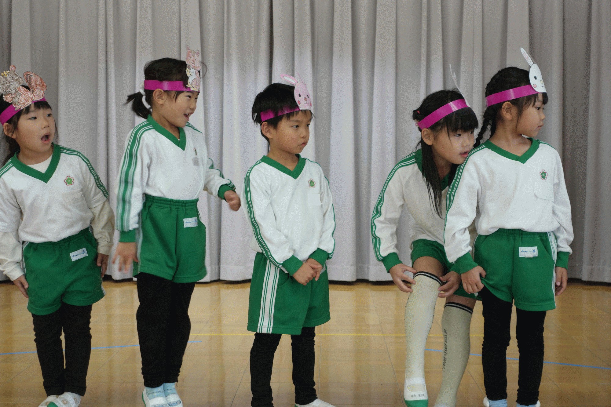 - 屋内で運動会の練習をしました