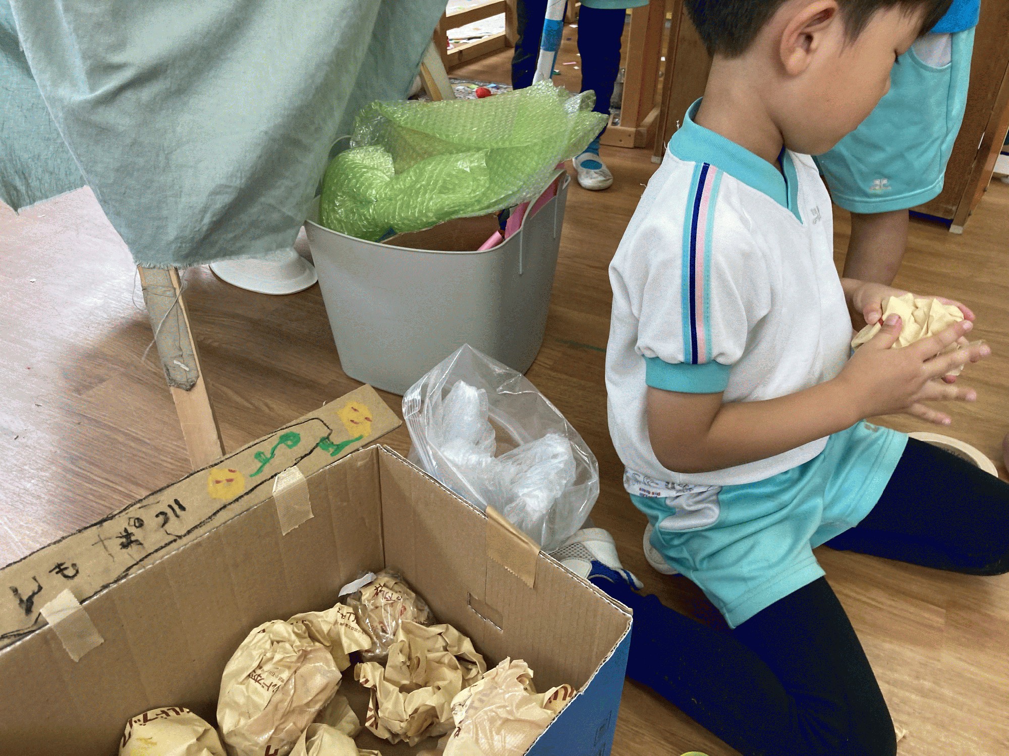 「いっぱい詰めたら、その分だけ食べられるってことにしよう!」と子どもたちのアイデアで、夢中になってたくさんのじゃがいもを作っていました!中には「家に帰ったら、じゃがいもの料理なにがあるか聞いてくるね!」という声も!じゃがいもメニューいくつ出てくるかな〜!