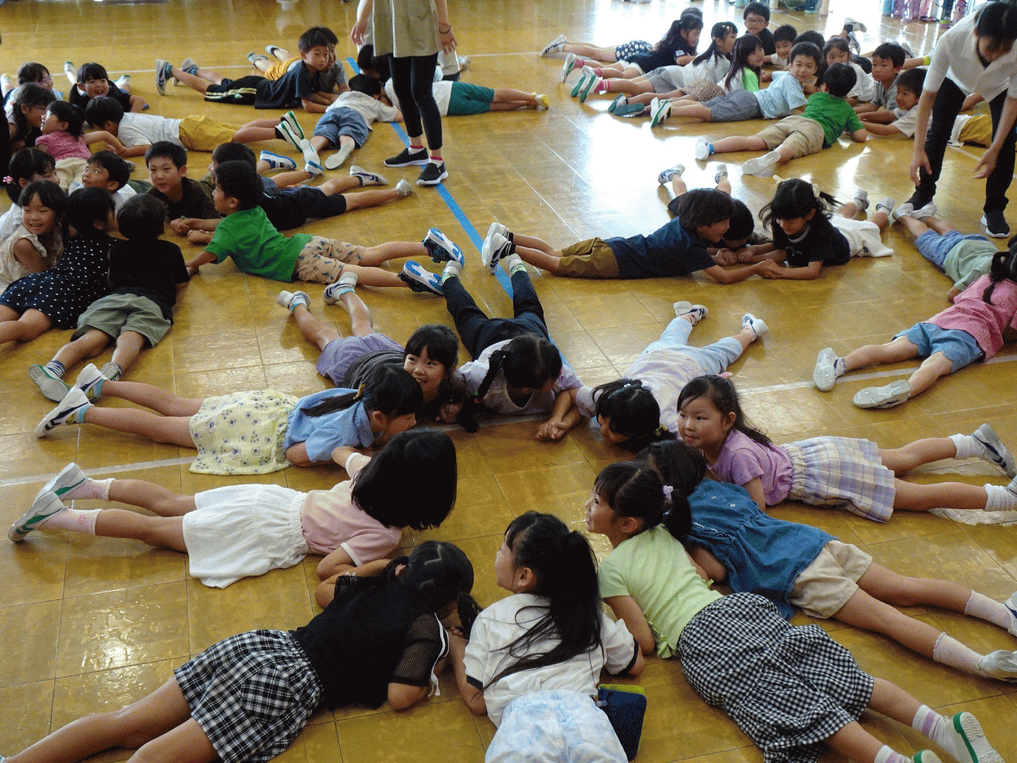 - 屋内で運動会の練習をしました