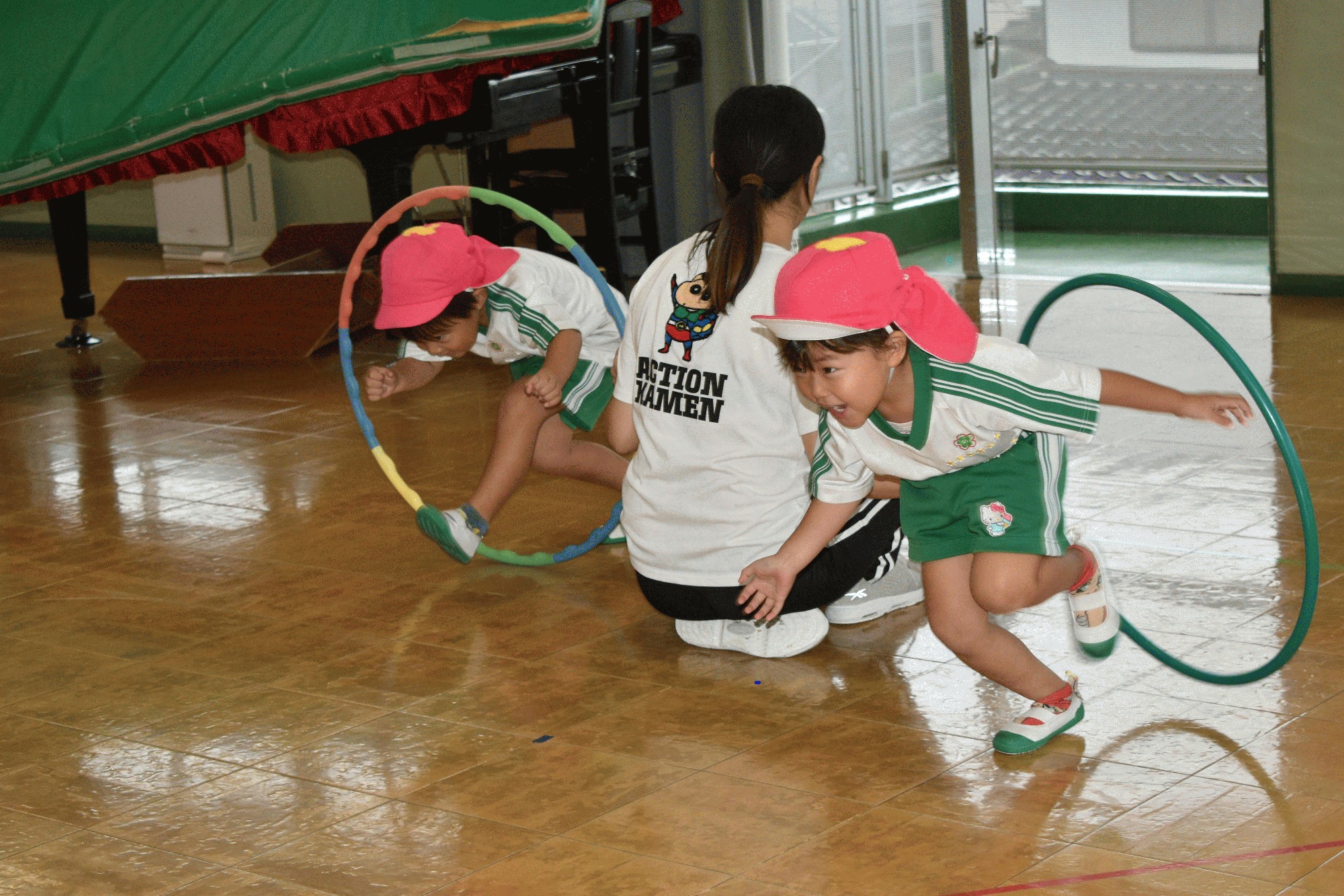 屋内で運動会の練習をしました