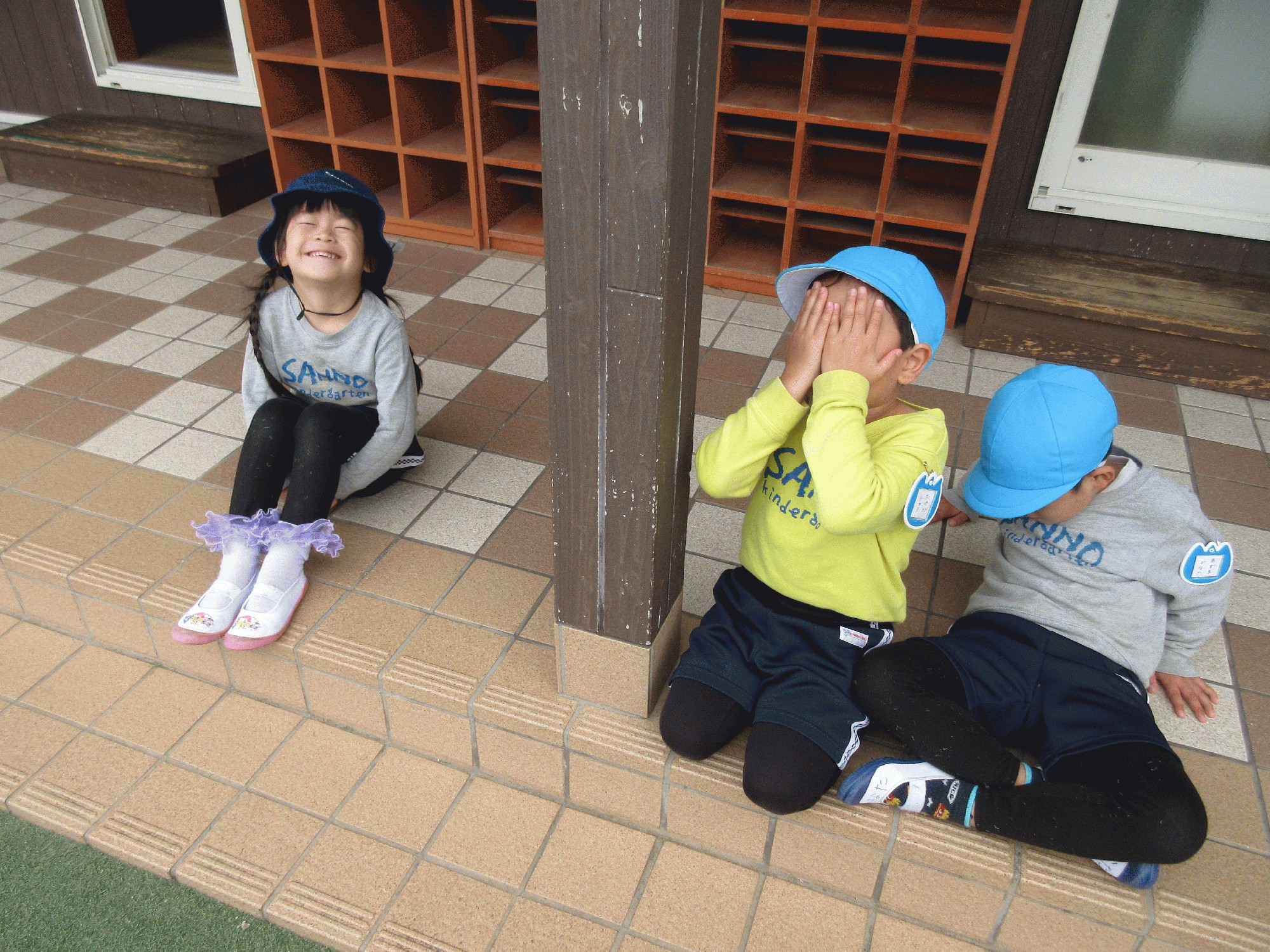 土管の隙間や滑り台の下、登らないと届かない様な高いところにまで隠してあってとても難しかったですがみんなで協力して全て見つけることができました!
