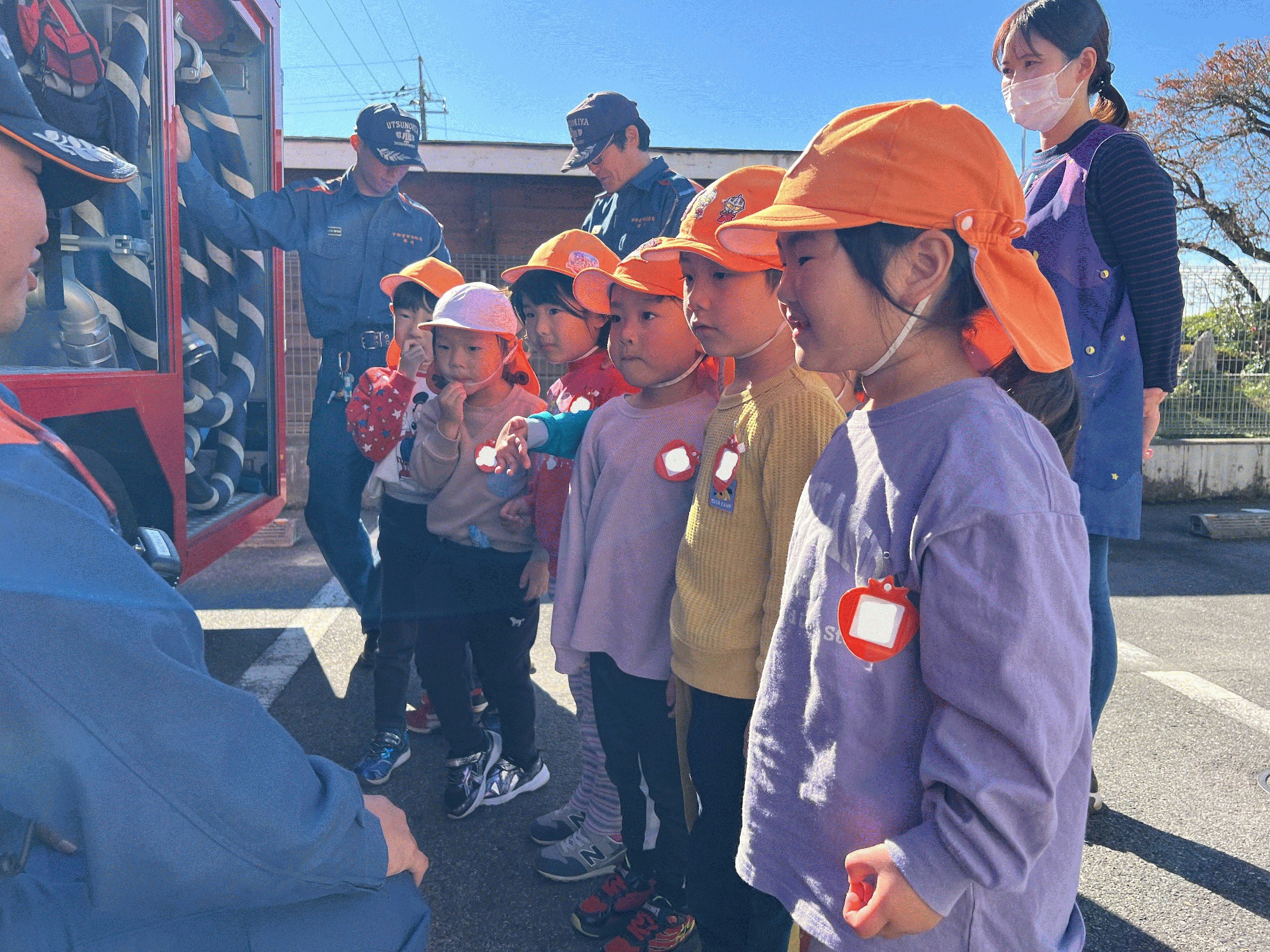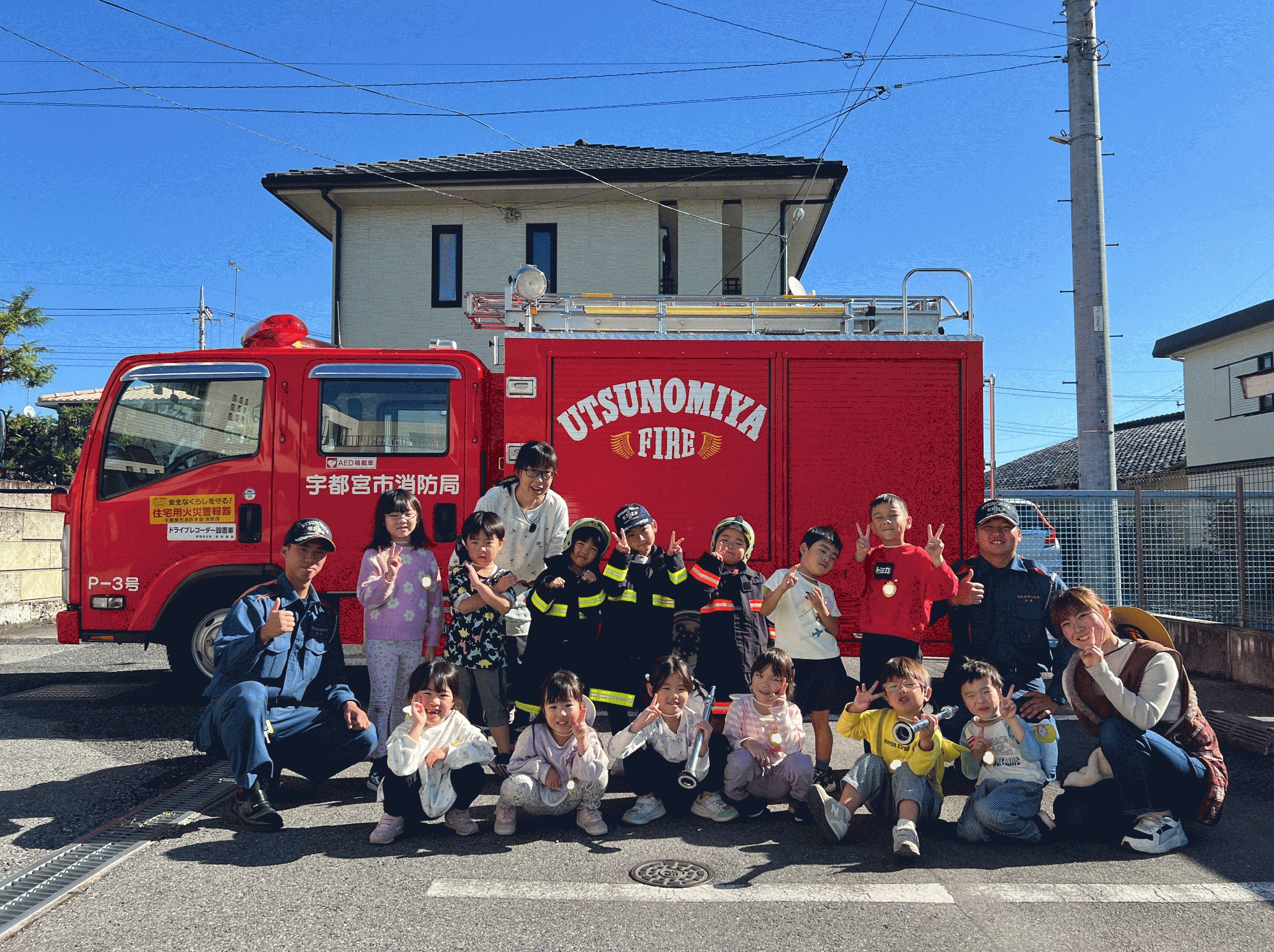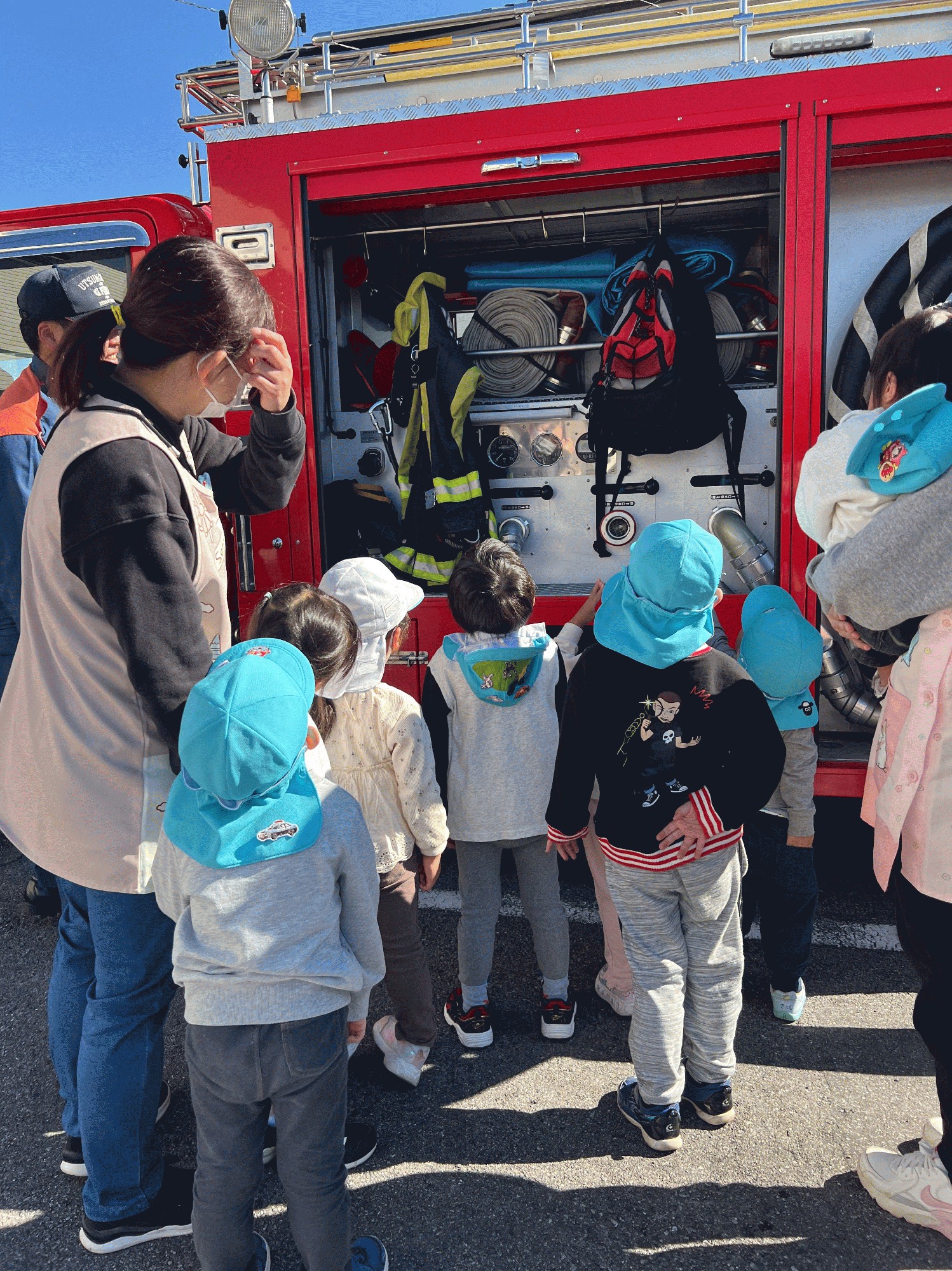 最後には消防車を見せていただき、クラスごとに写真を撮りました🚒