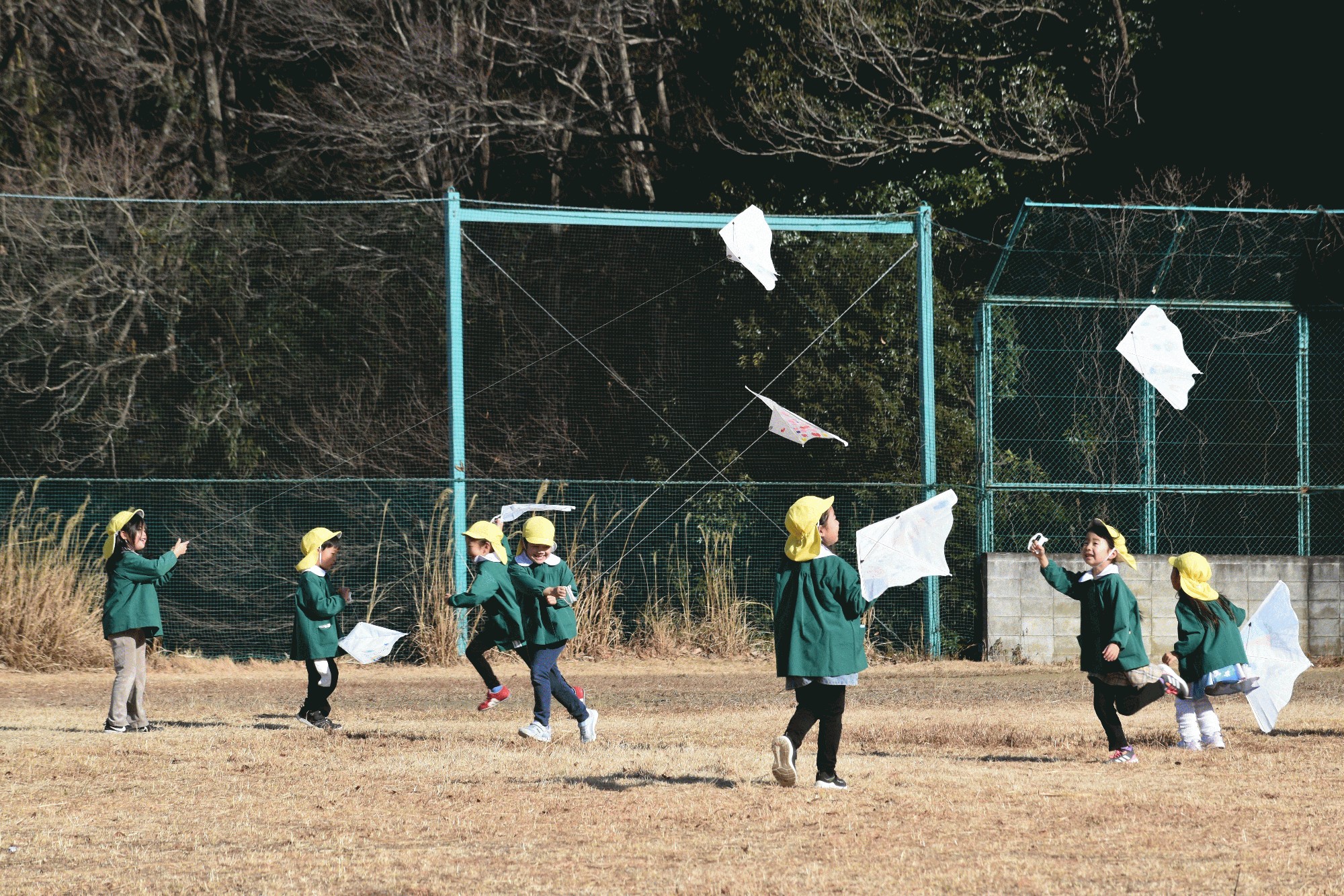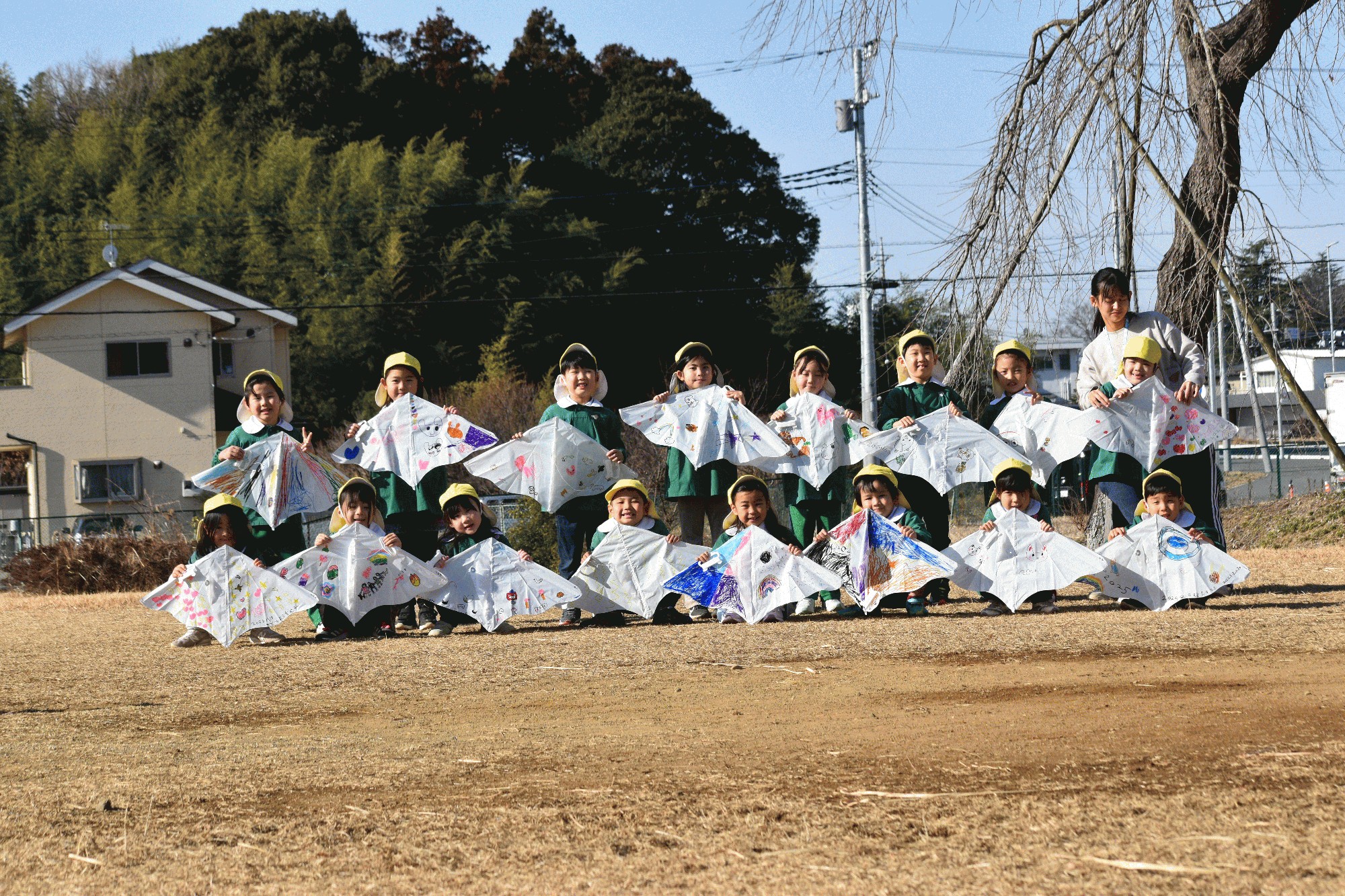 - 年長のこども達が凧揚げをしました