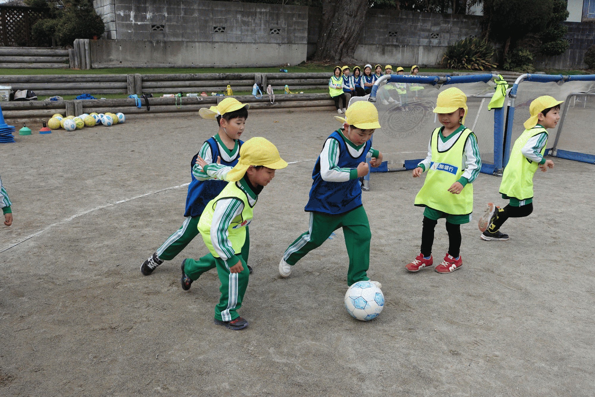 2月13日(金):今日は、年長で,今年度2回目となるホーリーホックのスポーツ体験教室がありました。始めにボールを使わずに色々なゲームで、体のいろいろな動きを高める運動をしました。続いて、ボールを使ってドリブルやシュートの練習をしました。最後は、男女別に2チームに分かれて,サッカーの試合をしました。子ども達は、ボールを使って思い切り体を動かして、とても楽しそうでした。