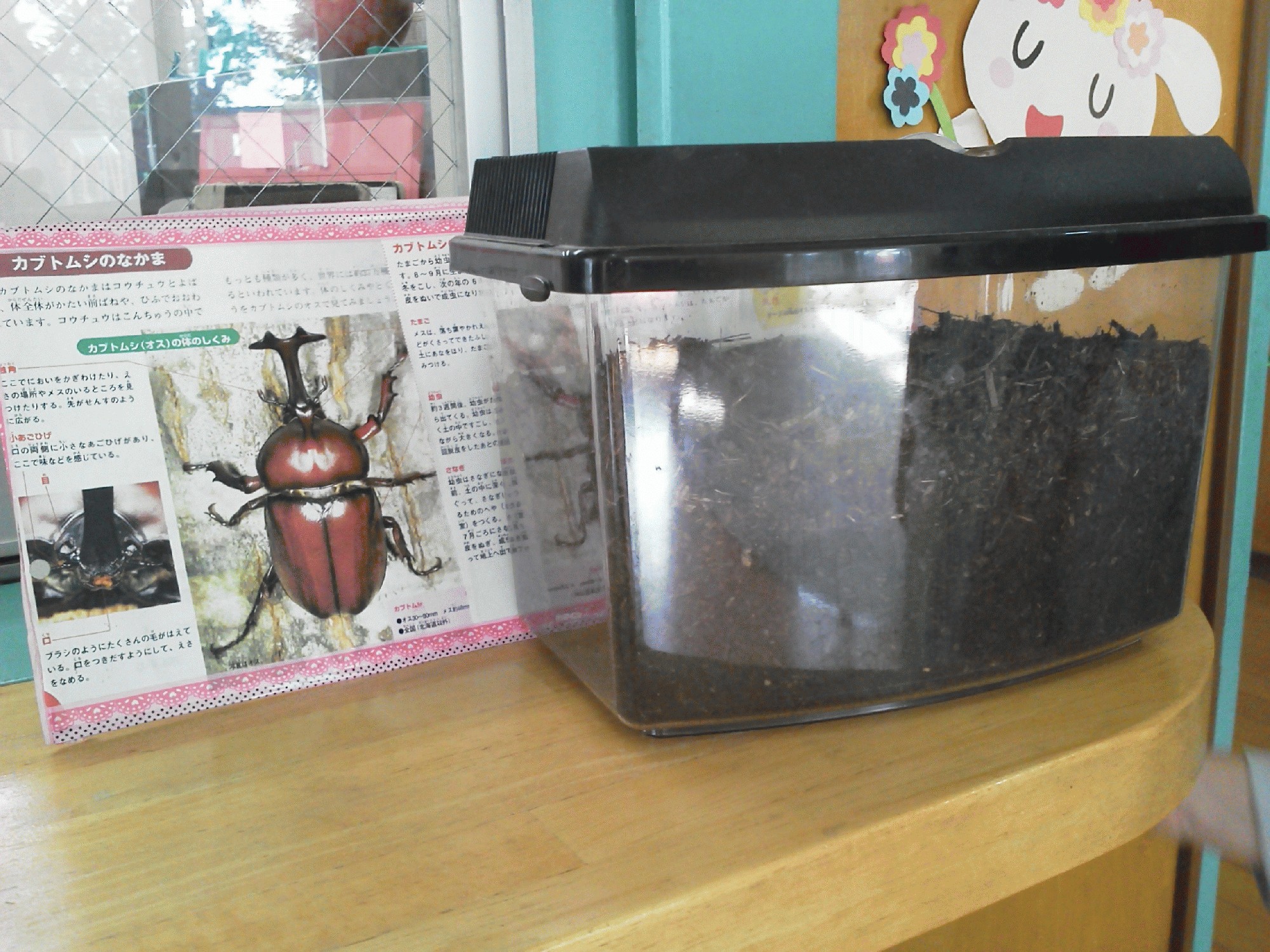 ようやく、不安定だった気温も落ち着いて、すっかり寒い冬の季節が顔を見せ始めてきました。私自身も、出来る限り長く布団にくるまっていたいと思うようになってきているのも事実であります。立正幼稚園には、カブトムシの幼虫がいます。子ども達はカブトムシの成虫の姿しか見たことがないので「カブトムシがいるよ」と教えてあげると、「え?どこどこ?」と目の前にいても、見つけることができません。「この温かい土の中で眠っているんだよ」と言うと、不思議そうにカゴの中を覗いていました。子ども達は、幼虫を起こさないようにお口をチャックして静かに眺め、早く大きくなーれとお願いしているような真剣な眼差しを送っていました。カブトムシの飼育を通して、子ども達の心も一緒に成長しているようです。また、カブトムシのように、たくさん寝て、たくさん食べて、体もしっかりと成長していけるといいですね。