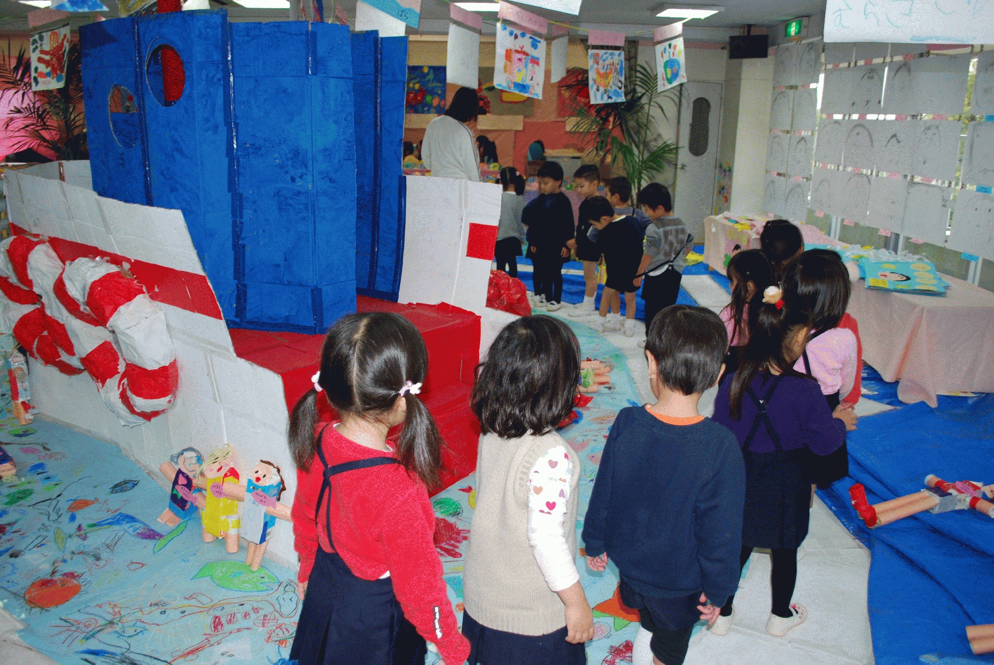 作品展には、大勢の皆さまにご来園賜り誠にありがとうございました。お友だちは、一生懸命描いた絵画やみんなで協力して作った作品をご家族の皆さまにご覧いただき、とても嬉しそうな表情を浮かべていました。