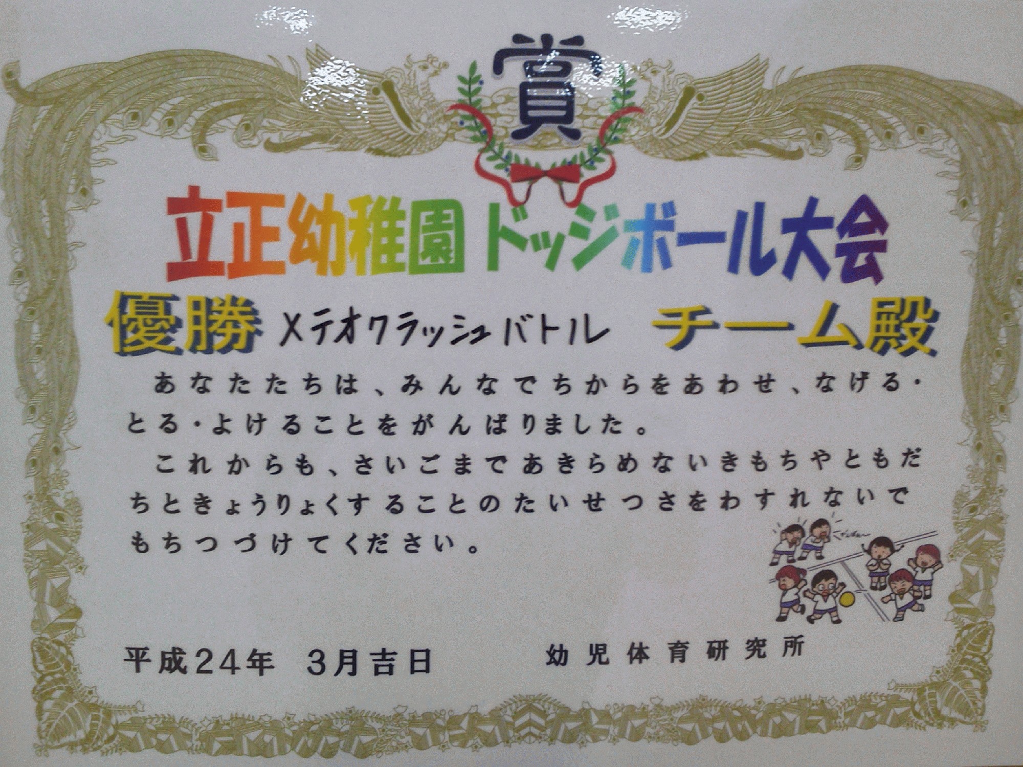 最終的には、試合に勝てそうなカッコいい名前に落ち着いたようです。私が個人的に気に入ったネーミングは「スカイブルー」チームです。年長組のお友だちに、どんなチーム名にしたのか是非聞いてみてください。