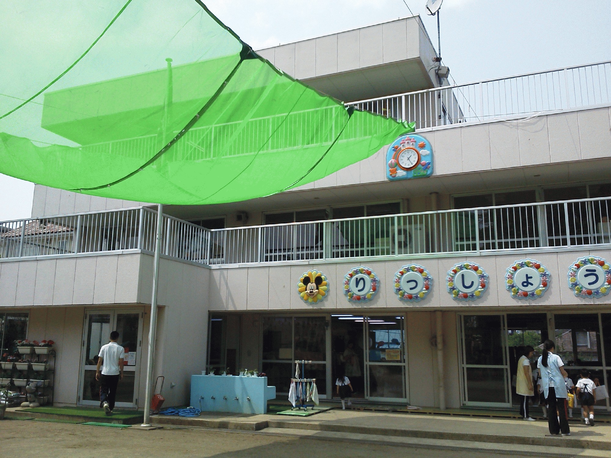 朝のお外遊びは、クラス別のカラー帽子・お帰りのお外遊びでは、バス別の帽子を着帽をし遊ぶのですがそれだけでは、太陽さんの陽射しからは逃げれません。