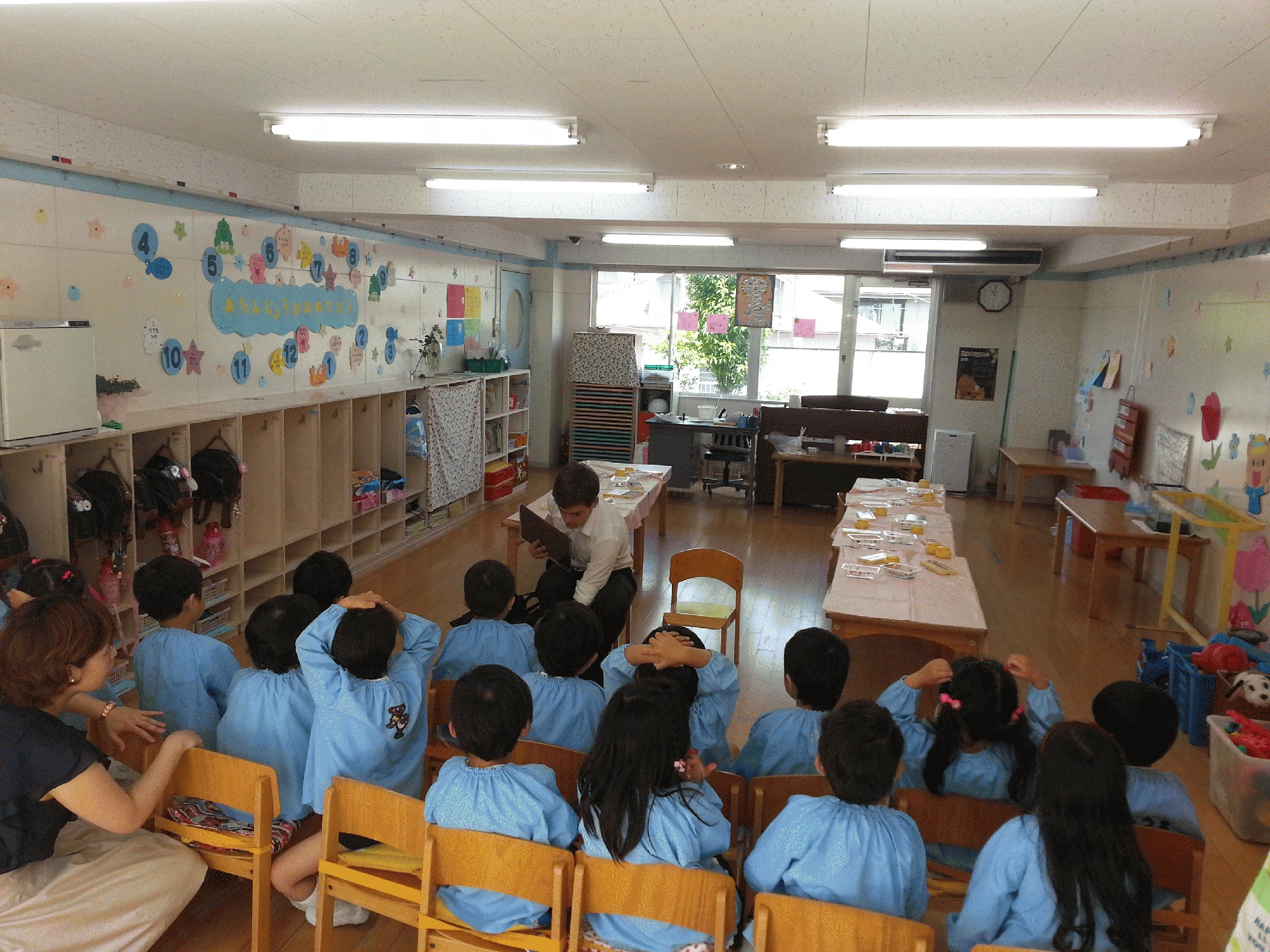 指導を終え退出しようとすると子ども達は保育室の扉ま