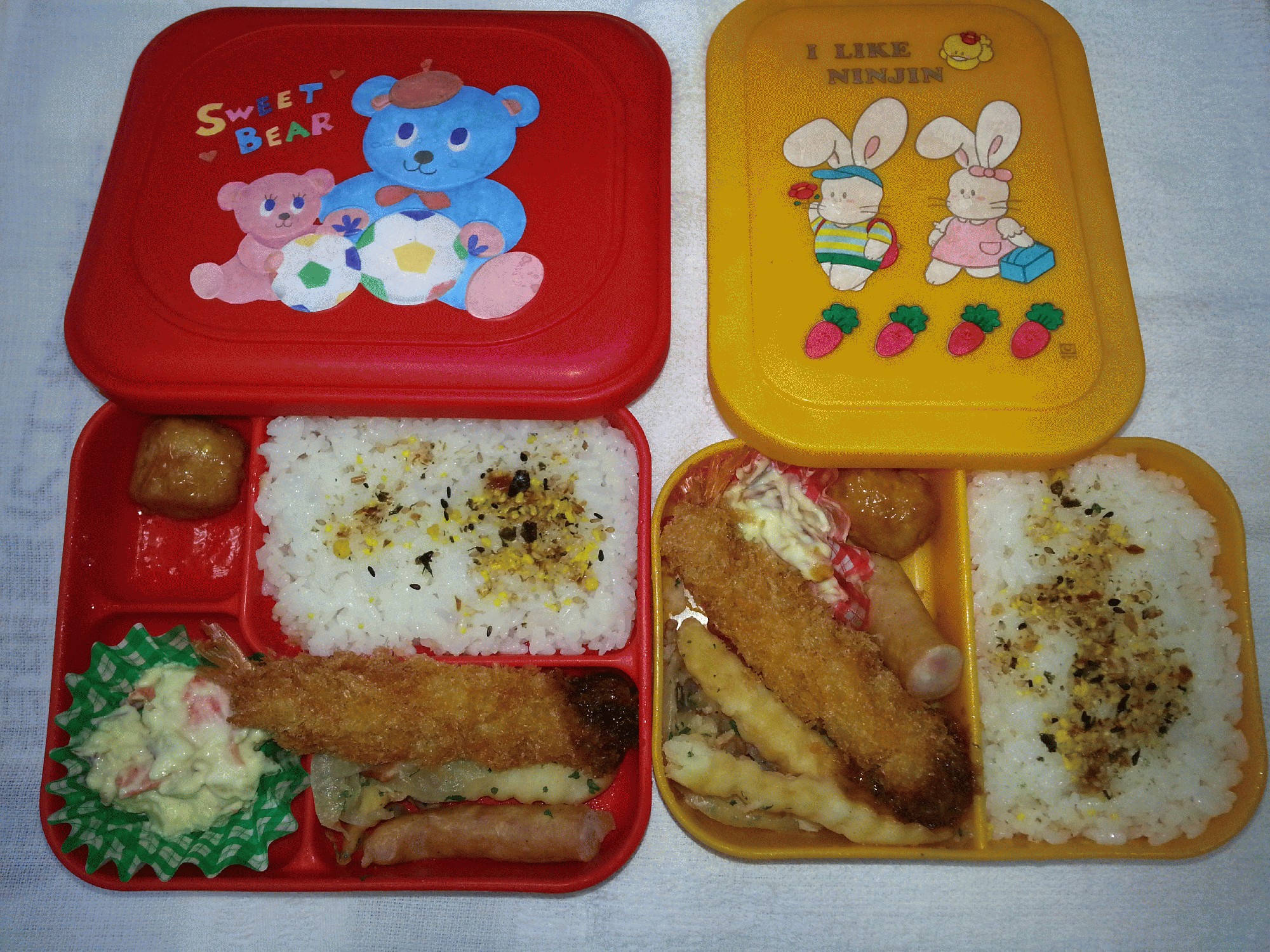 (赤い容器は、年中長組)(黄色容器は、年少組)