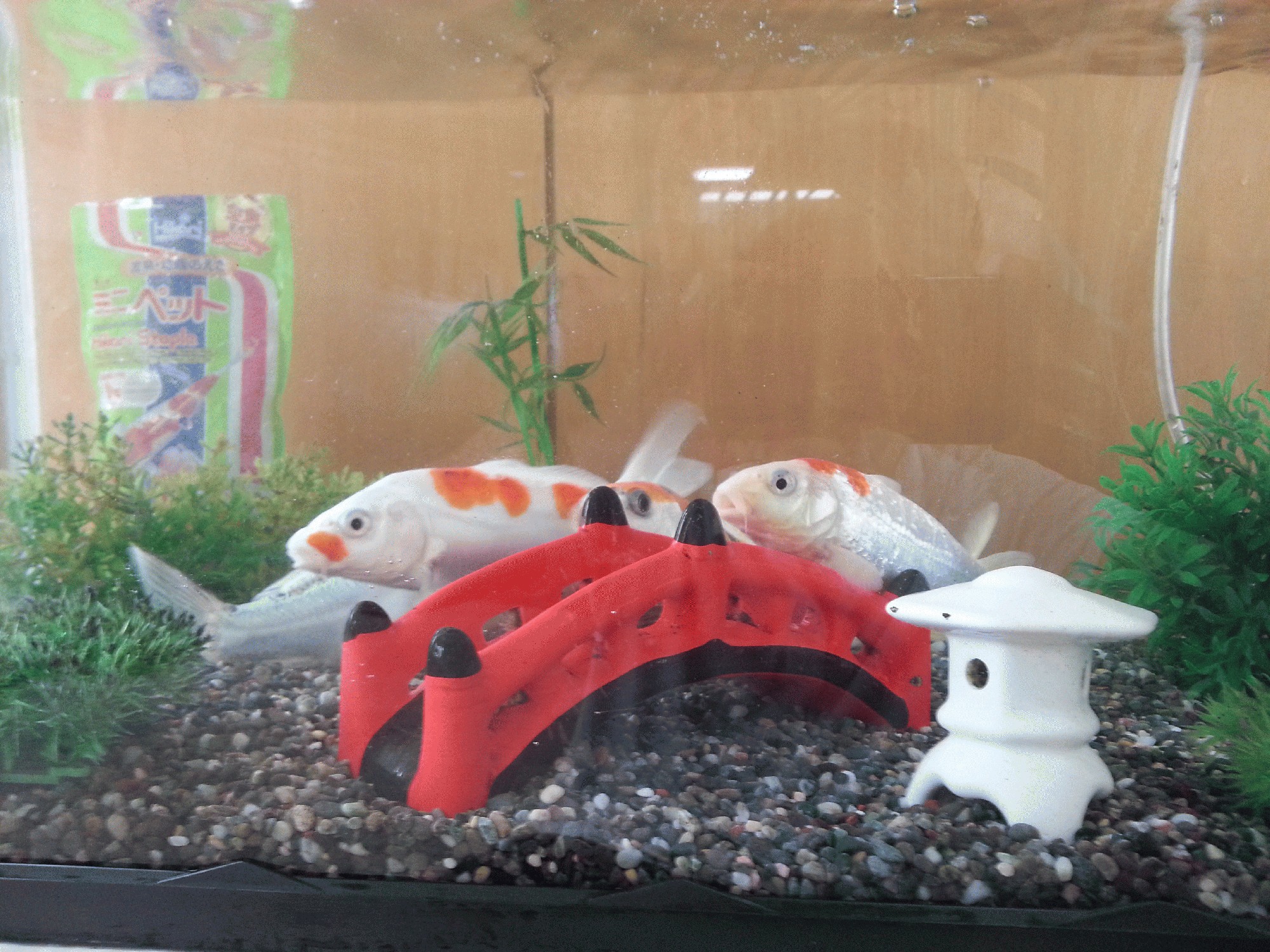 玄関の水槽の鯉も、毎日元気に泳ぎ、少しずつ大きくなって