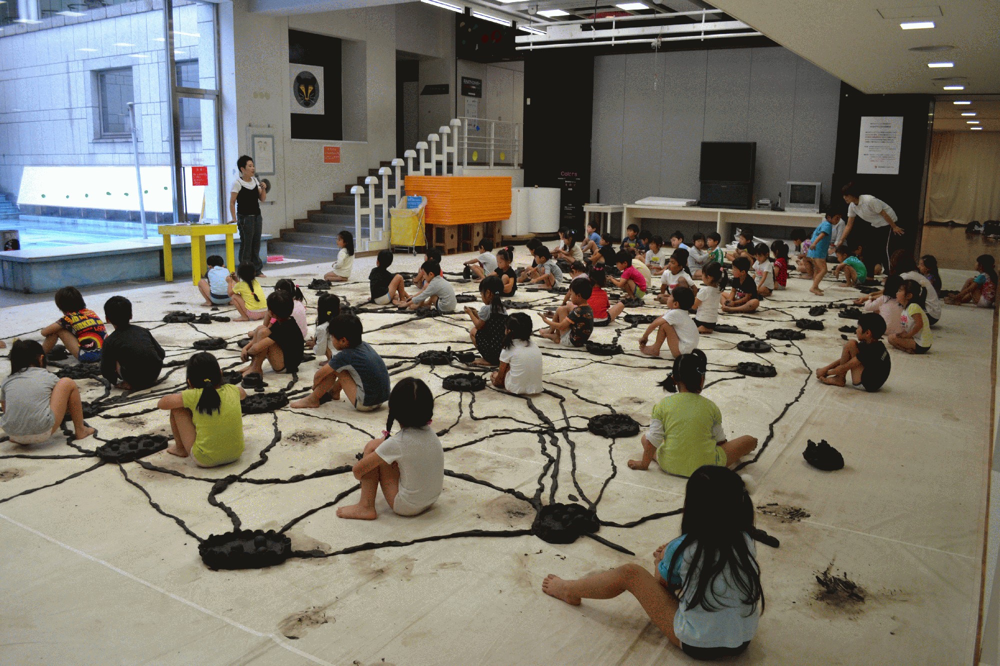 本日は、年中組と年長組のお友だちと横浜美術館にあります 子どものアトリエに行ってきました。 このアトリエは毎年行けるという訳ではなく、抽選で引いた 年の参加になるので中々アトリエに行ける機会がないのですが、 10月15日(火)に参加することが出来ました。 今回は、1人4sもの粘土をもらって、自分の粘土からお友 だちの粘土まで道を作って大きな大きな街を作りました。 60人の粘土がみんな繋がっていて、みんなのところに行ける とみんな喜んでいました。 次回はいつになるかまだ分かりませんが、また早い時期に行ける ことを楽しみにしています。