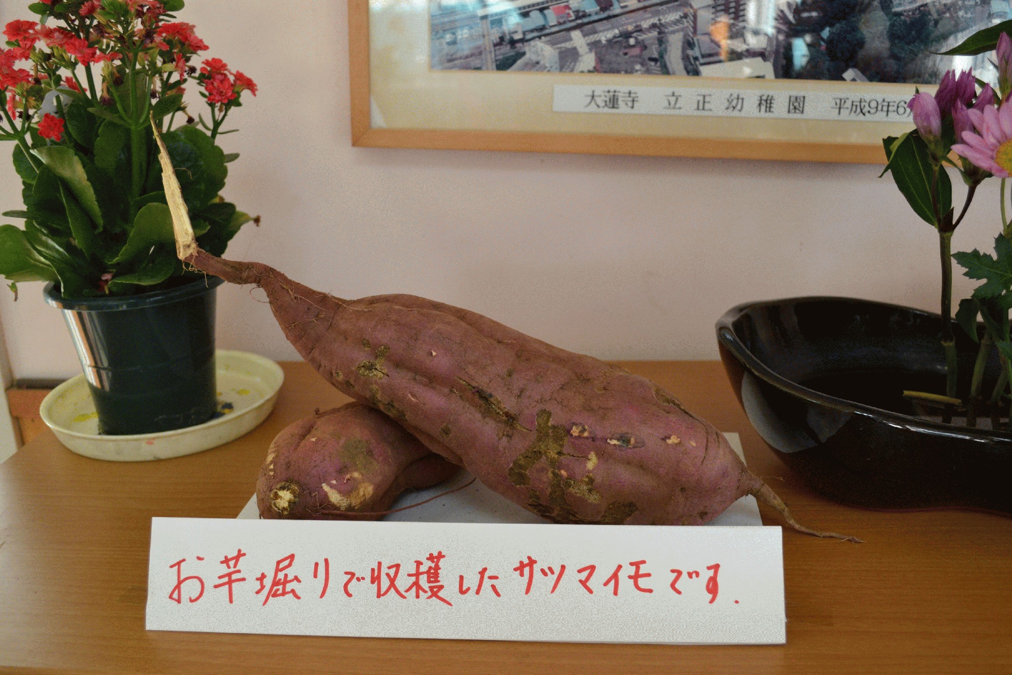 写真は、畑でとれた大きなサツマイモです。