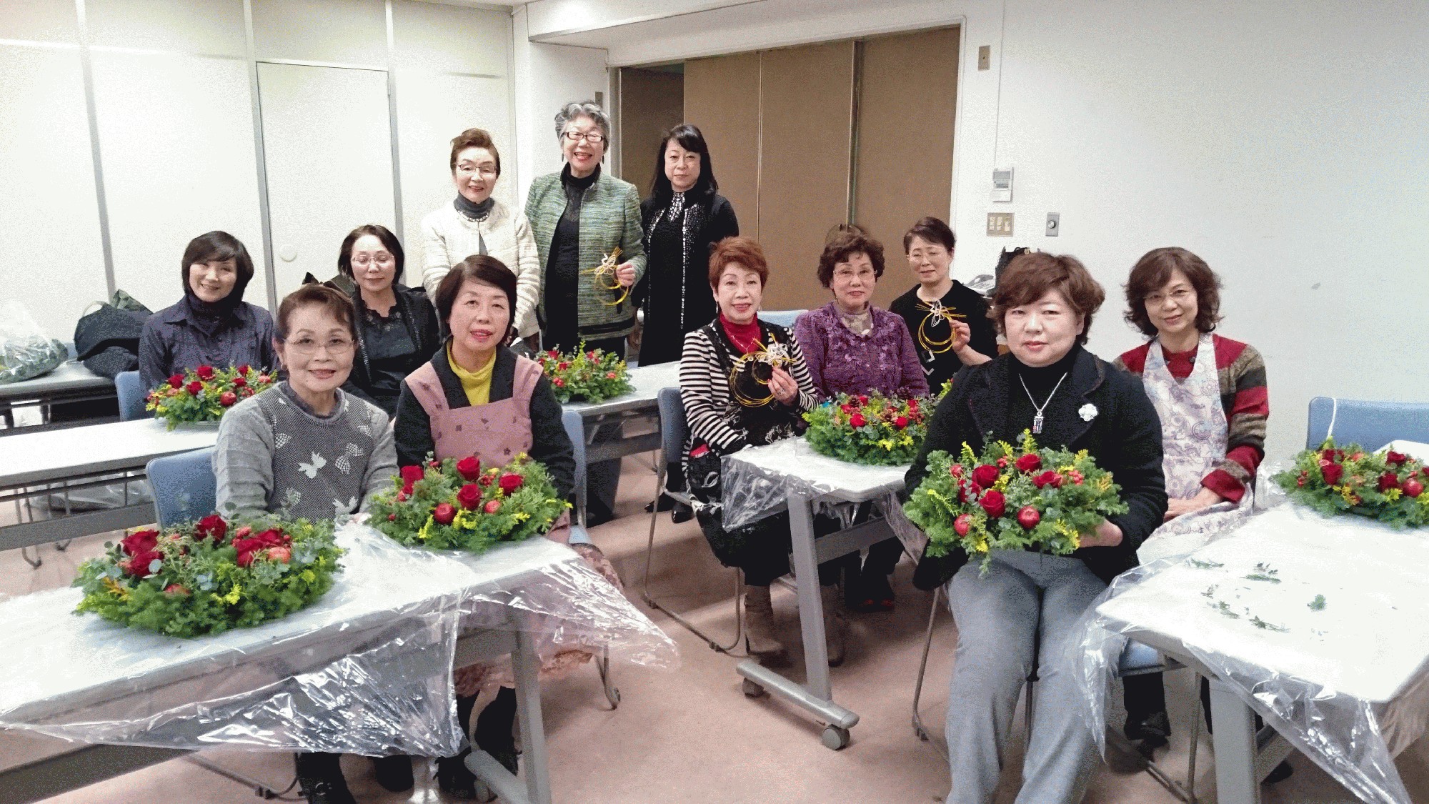 12月10日研修委員会ではフラワーアレンジメントの講習会を開催しました。 船田委員長を講師にクリスマスリースの作成と、正月飾りも楽しめるアレンジを教わり終了後、ケーキ&紅茶を頂きながら会員交流をはかりました。