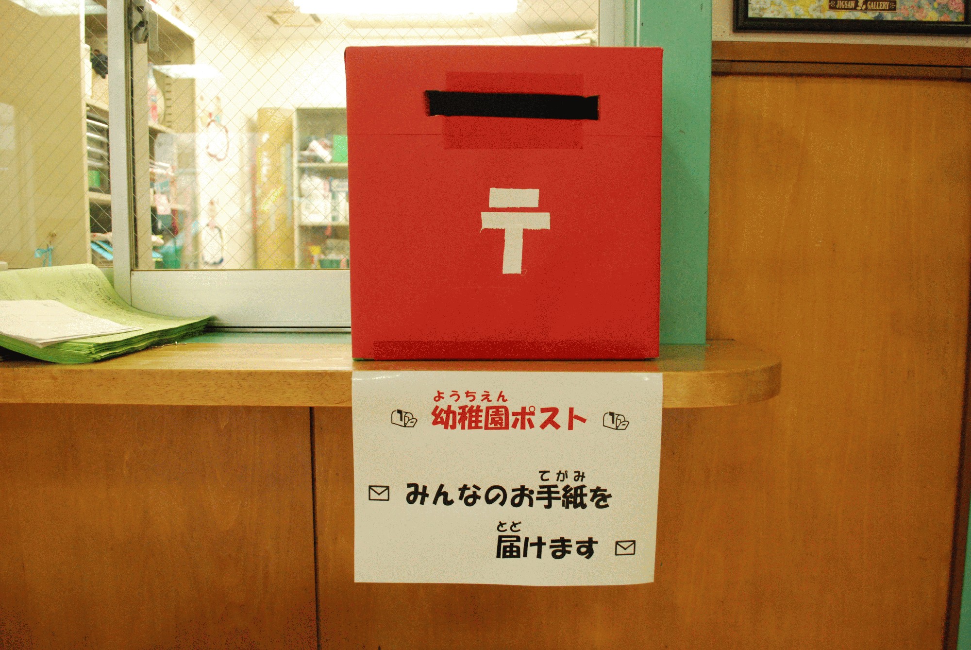 毎年、お正月シーズンになると年賀状の練習でポストを出して 子ども達同士のお手紙交流をしているんですが、今年は子ども たちにお手紙を送る楽しさ、もらった時の嬉しさを知ってもら う為に例年より早めに設置致しました。 年賀状シーズンに出すとどうしてもお手紙の書き方やひらがな の書き方分からなくて、ようやく出せるようになった頃には、 もうだいぶ日が経ってしまうということもありますので、 たっぷり練習の時間を設けました。 そして、みんなもポストに興味津々です。 さぁ〜せっかく作ったポストなので、ポスト交流が流行する ことを心から願っています。笑 本日の写真「 玄関にポスト設置 」