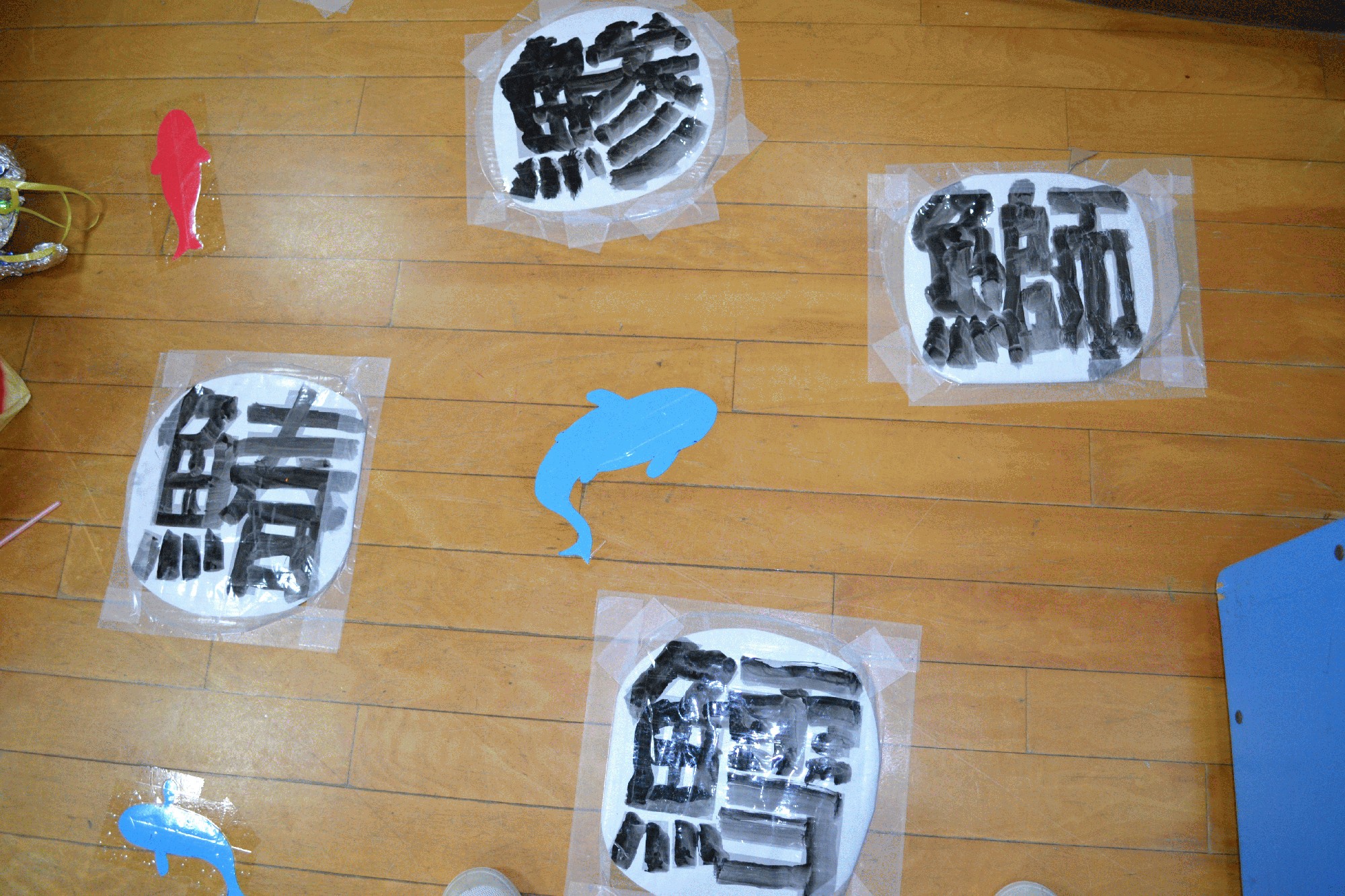 牛乳パックをくっつけたり、魚の絵をかいてもらったり!
