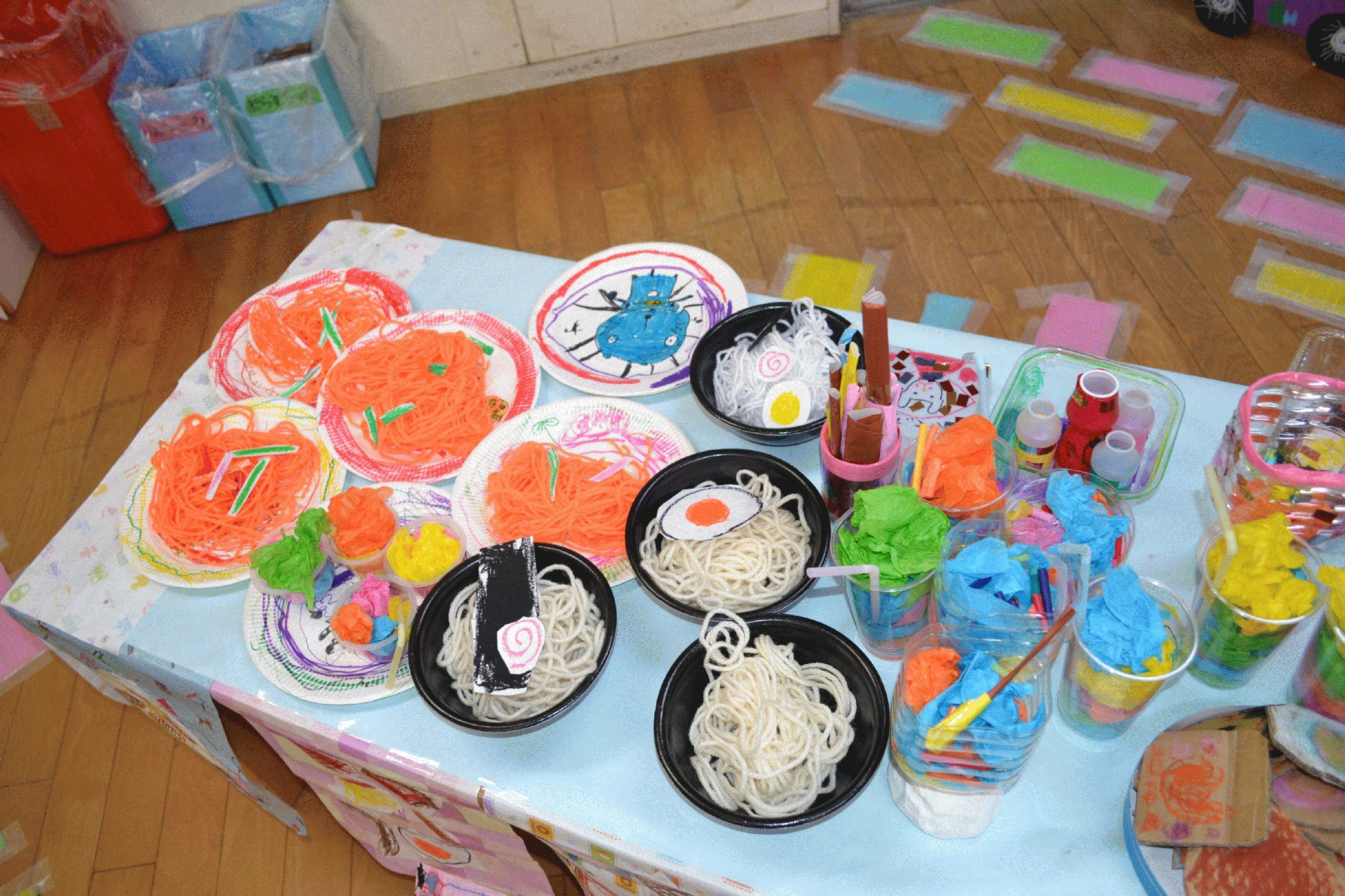 グループ製作ではキッチンコーナーやイメージマスコット、