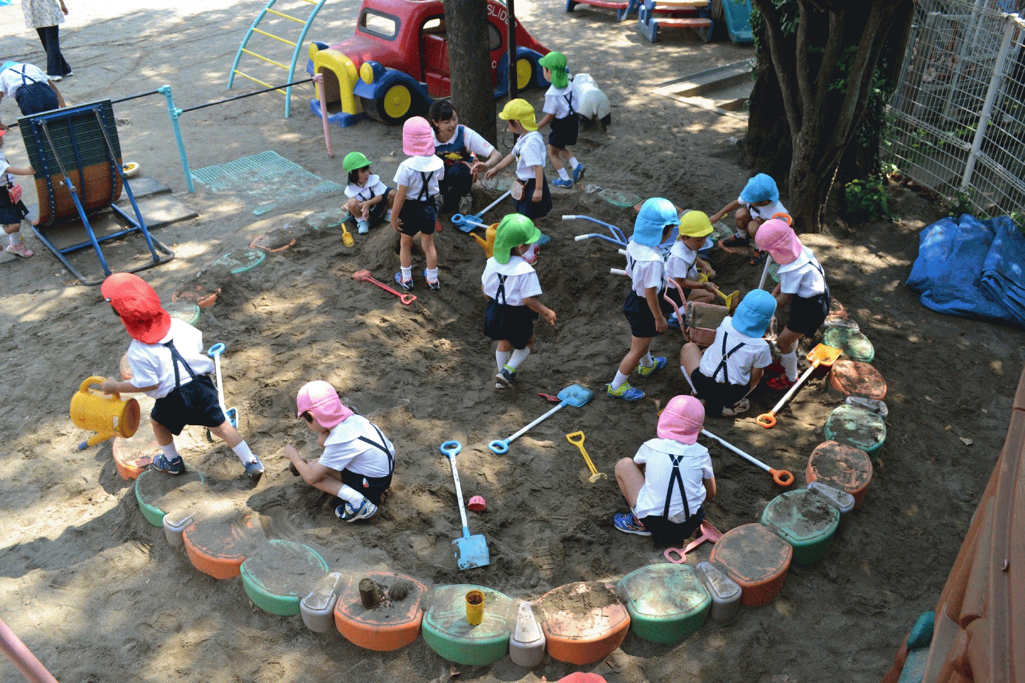 園庭で待機するのは、危険性高いからです。