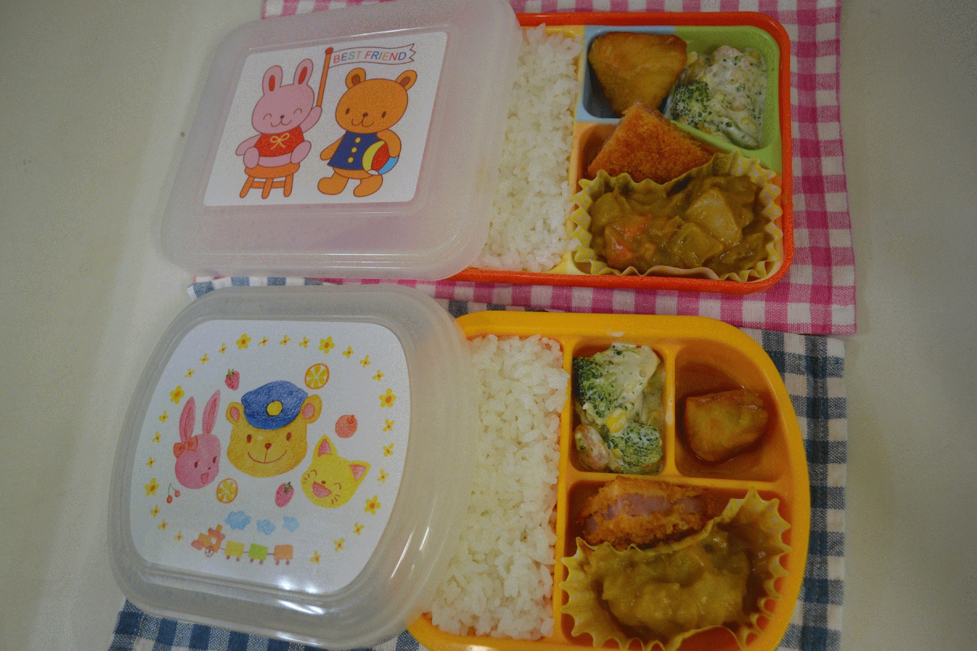 黄色い器は年少さん、オレンジの器が年中・年長さんの給食です。