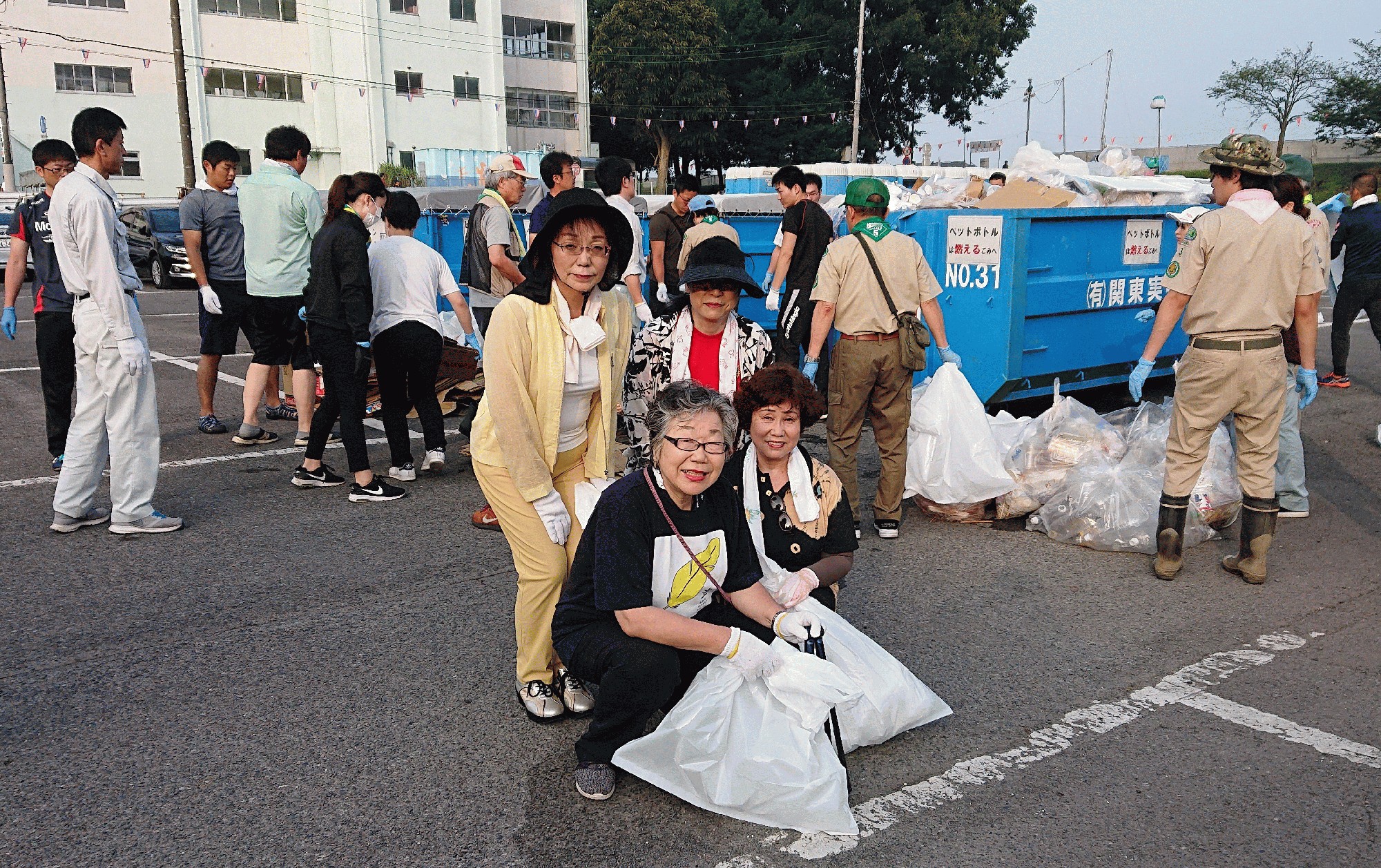 サマーフェスティバルクリーン作戦が、7月29日(月)早朝に実施され、各企業・団体・地域より多くの方が集まりました。 参加者がそれぞれゴミ袋をもって一斉に作業を行うとみるみるゴミがなくなり綺麗な街になりました。 小山商工会議所女性経営者会は、市役所西側駐車場及び文化センター前のゴミ拾いを行いました。去年より多かったゴミの量が、花火大会の盛り上がりを感じさせてくれました。
