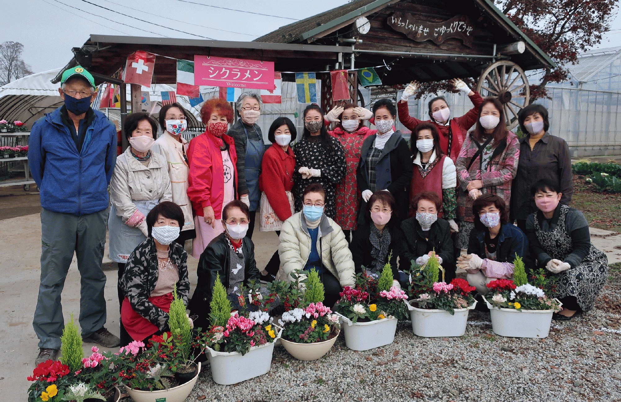11月26日(木)に全体事業「寄せ植え教室」を上野花園(小山市荒井)にて開催し、会員19名が参加しました。コロナ禍ということもあり、しっかり感染対策をして、屋外で密を避けながらの作業になりました。 当日は天候にも恵まれ、綺麗な花で寄せ植えを作ってリフレッシュすることも出来、とても有意義な時間を過ごすことが出来ました。