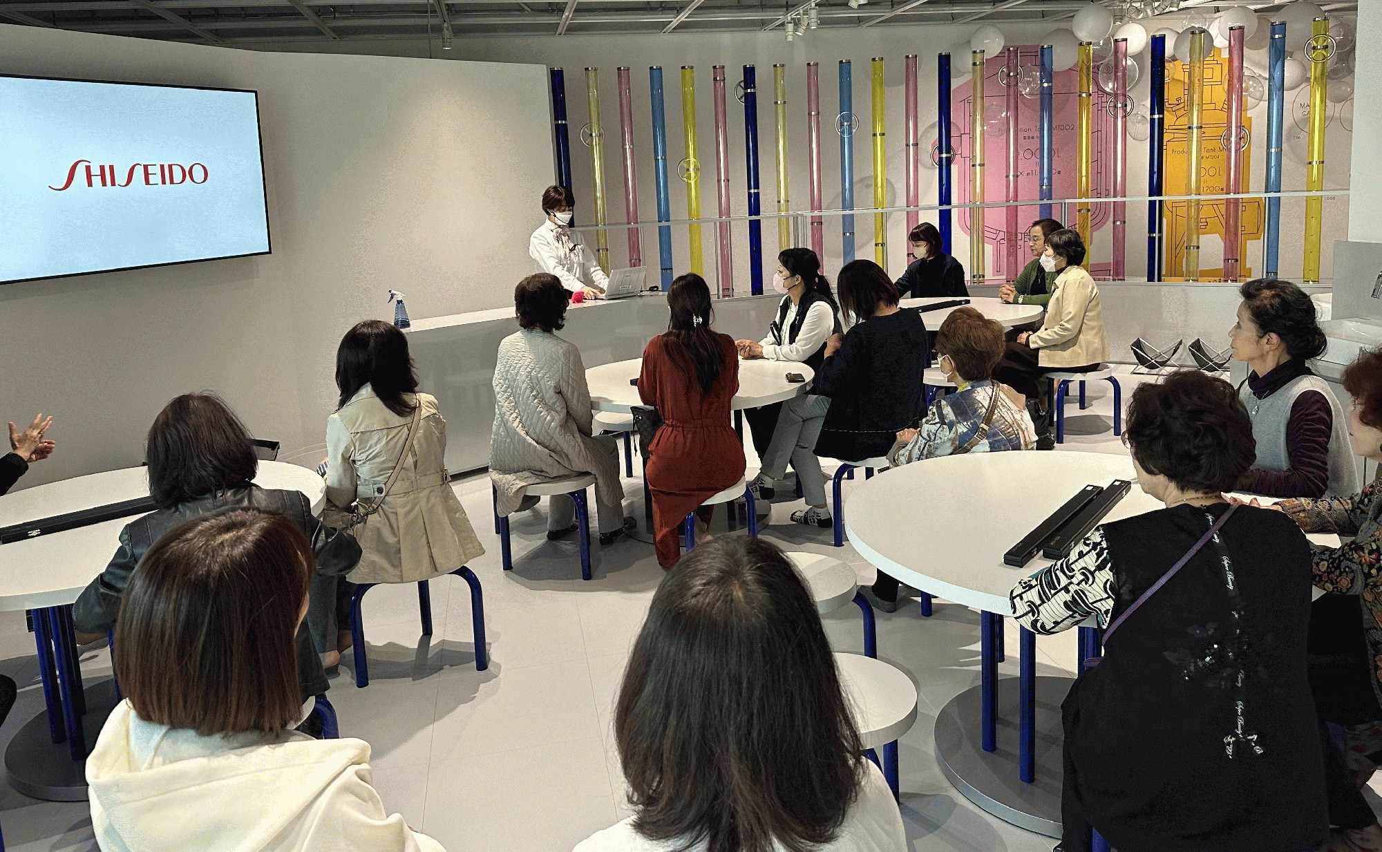 資生堂那須工場の見学では、サステナブルな社会の実現へ向けた取り組みと「BEAUTY PLAYGROUND」でワクワクしながら美と触れ合い、メイクアップ体験、クイズ、ワークショップ等で、化粧品の知識を楽しく学びました。女性経営者会員の美意識の高さ、深い探求心を感じました。