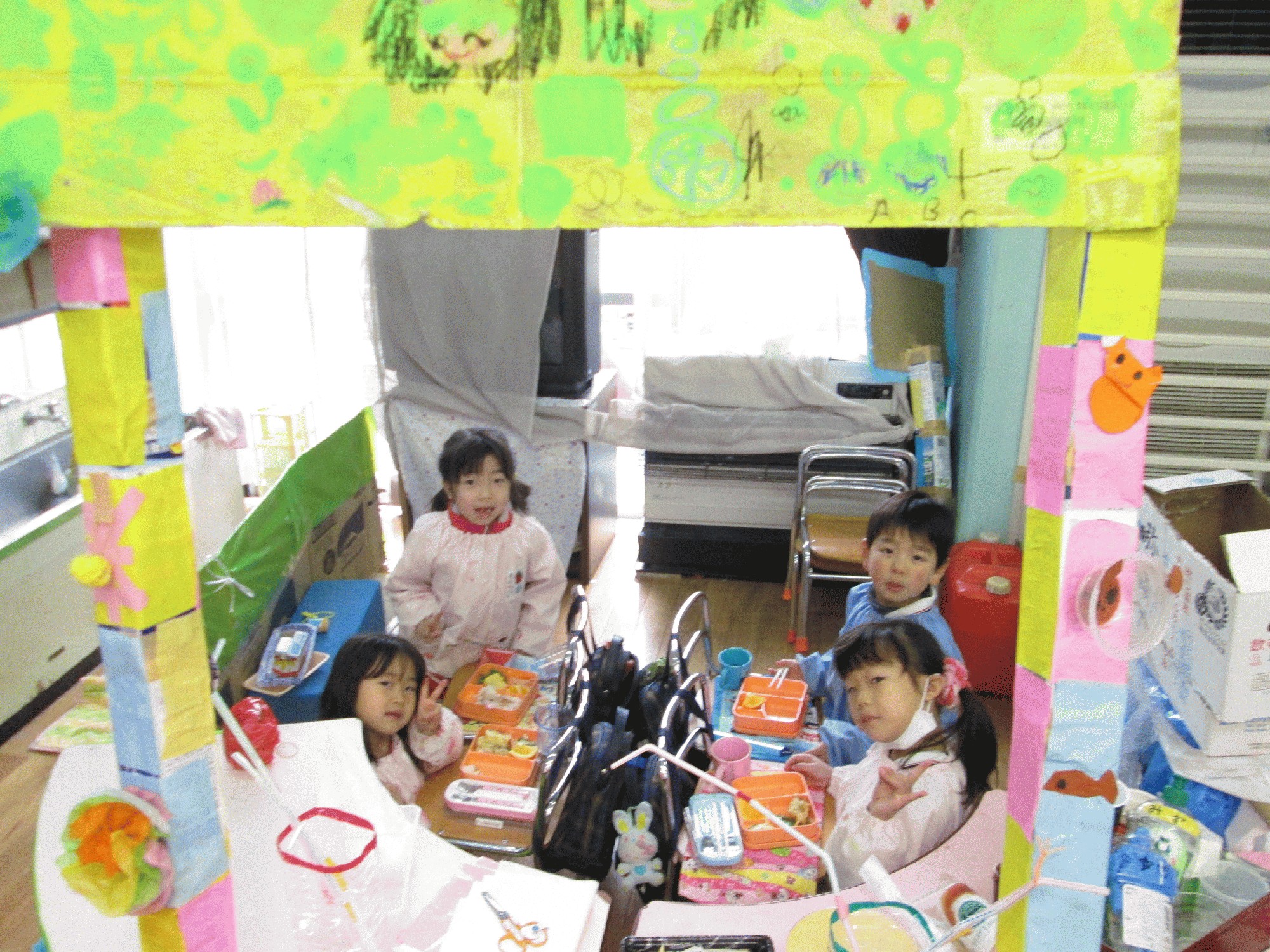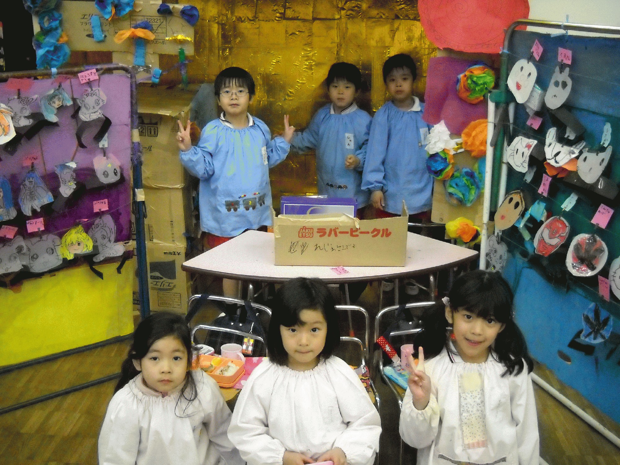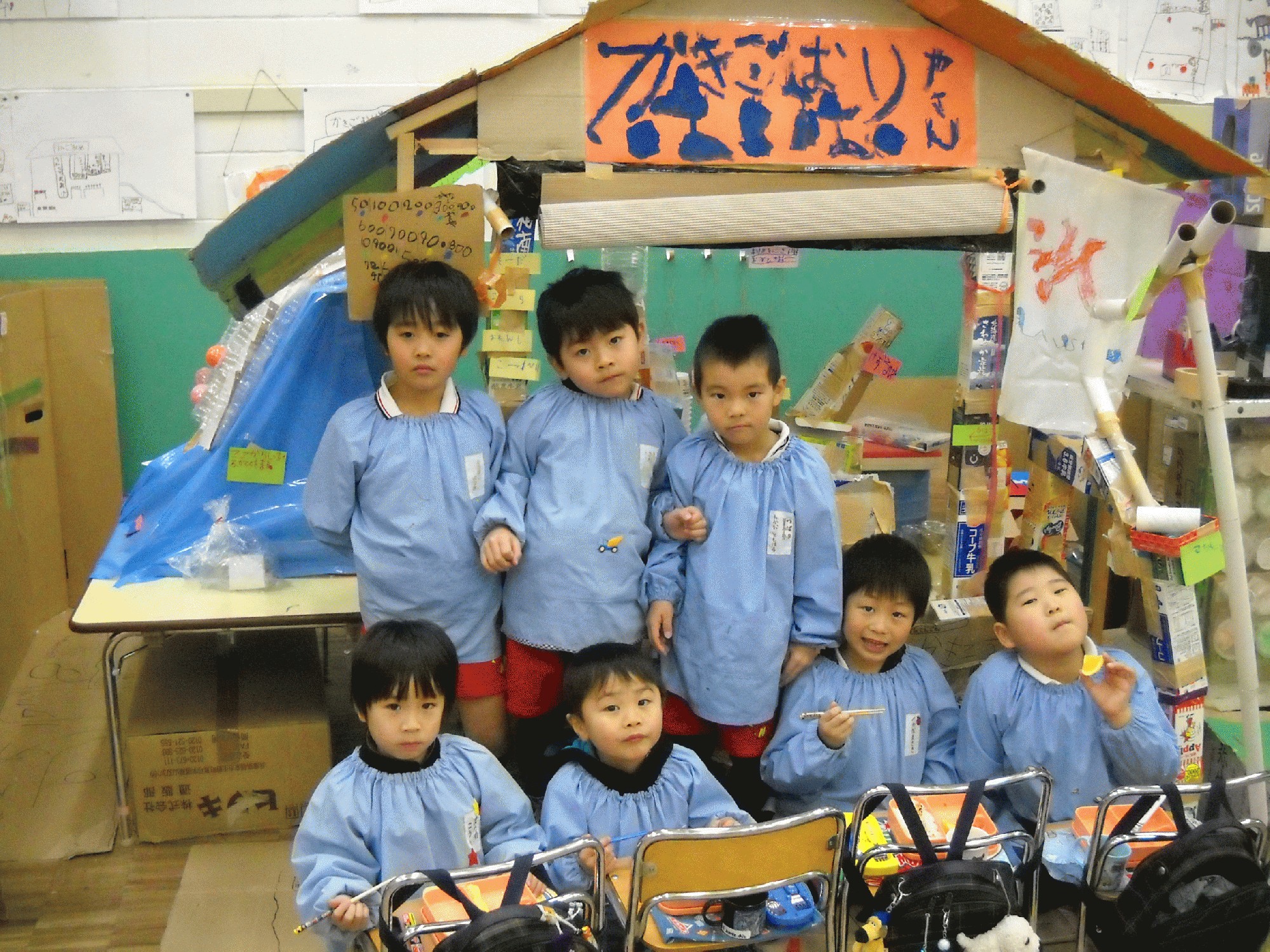 年長の協同製作お祭りの屋台が出来るまでの写真を載せます。1日目