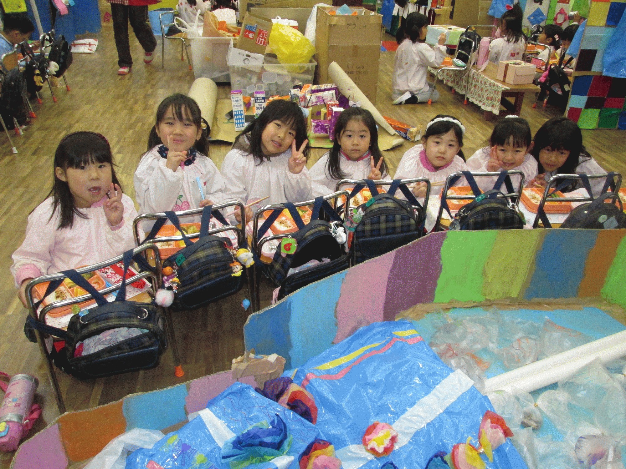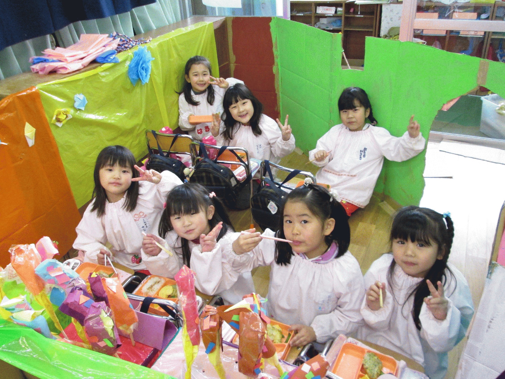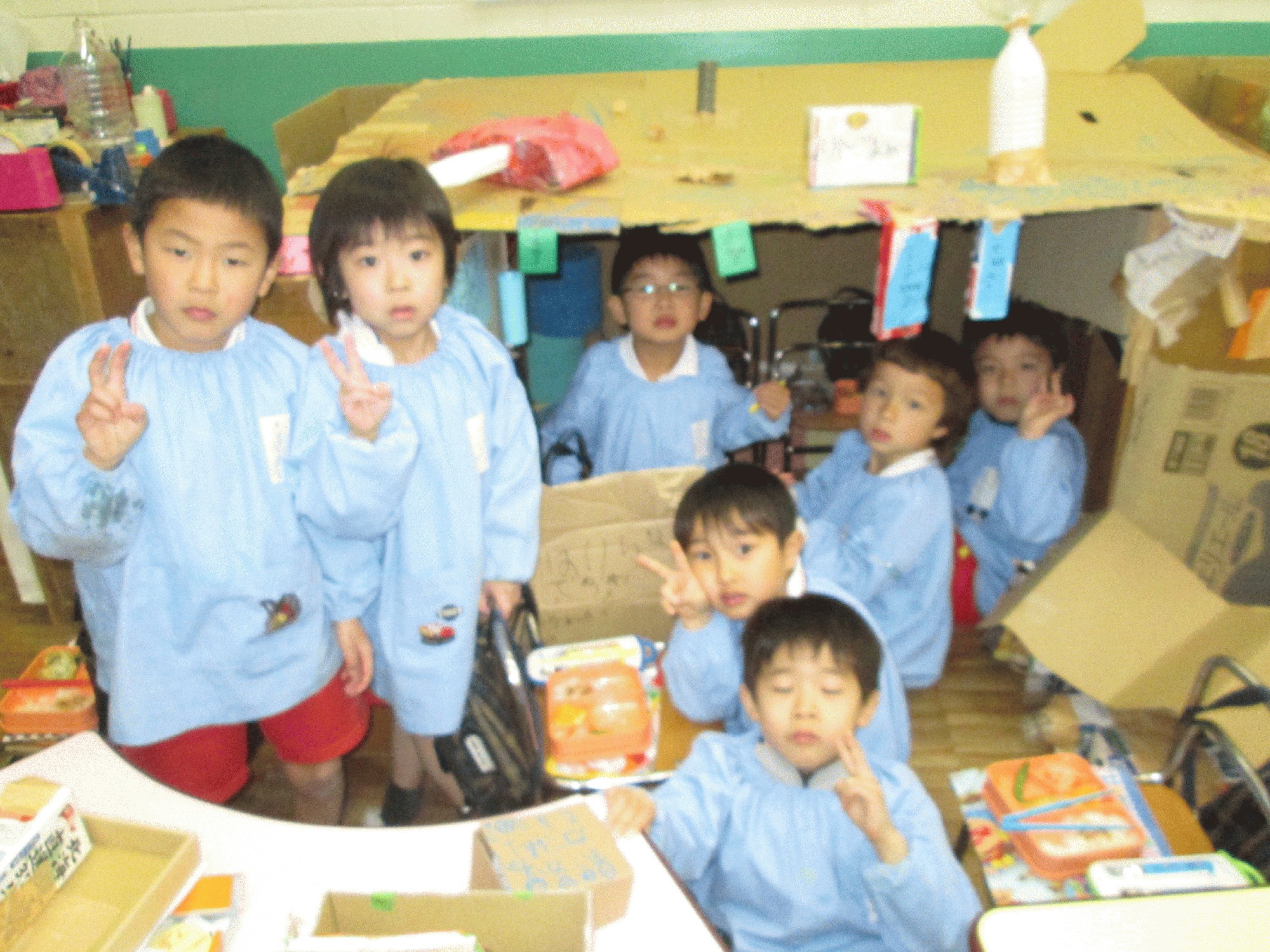 年長の協同製作お祭りの屋台が出来るまでの写真を載せます。1日目