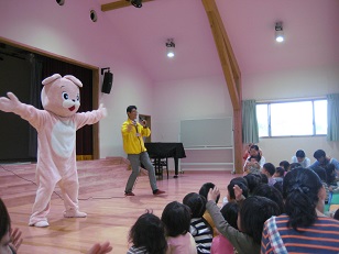 神奈川県くらし安全課による子ども達への誘拐防止教室を木の子ホールで行いました。山王幼稚園の年長さんも一緒にお勉強しに来てくれました!