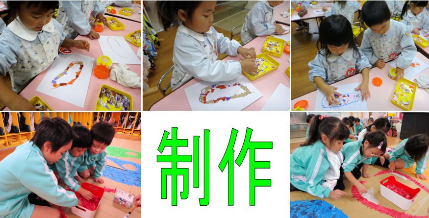 - 年長モザイクアート 年中園外保育