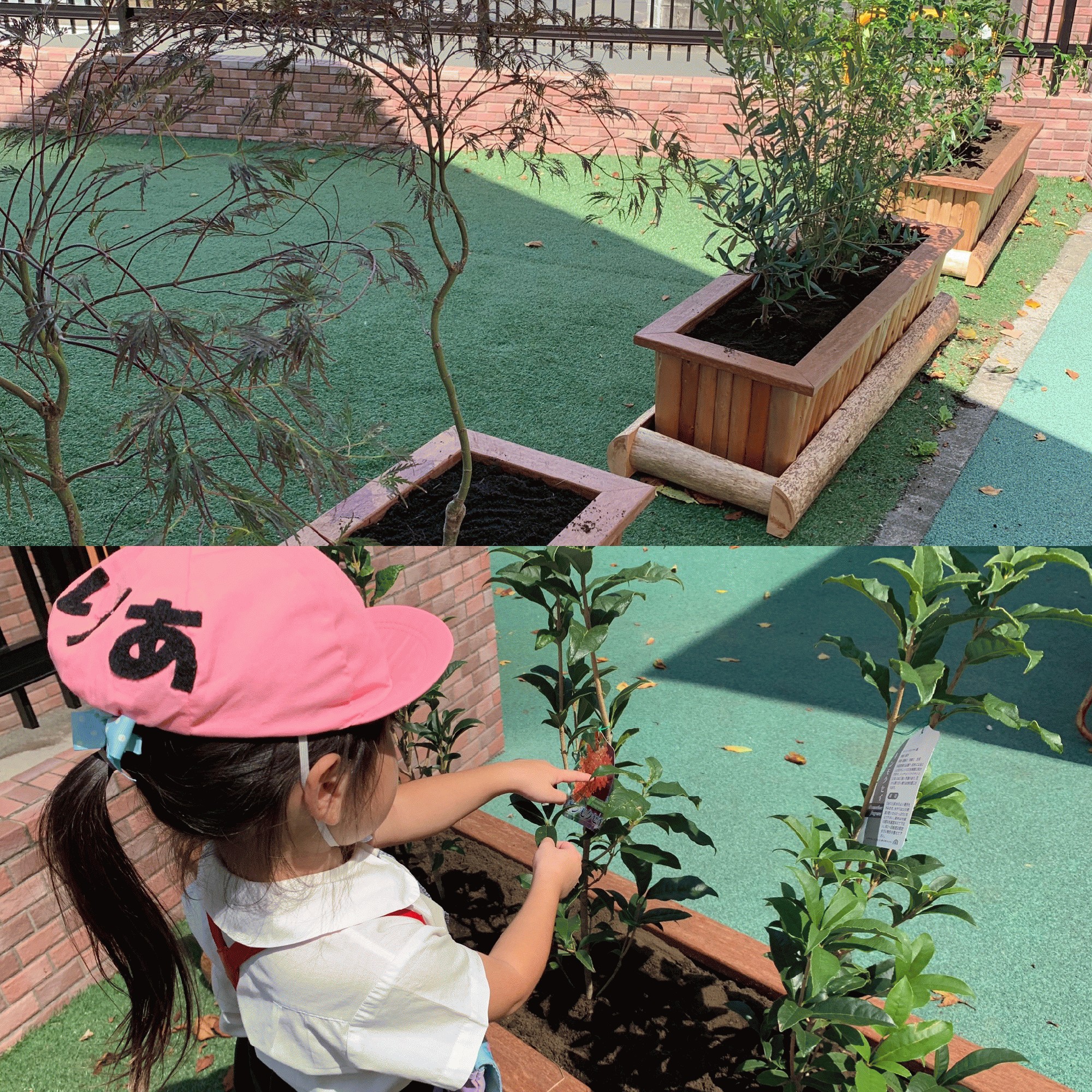 ◎芝生と園庭のあいだのプランターには