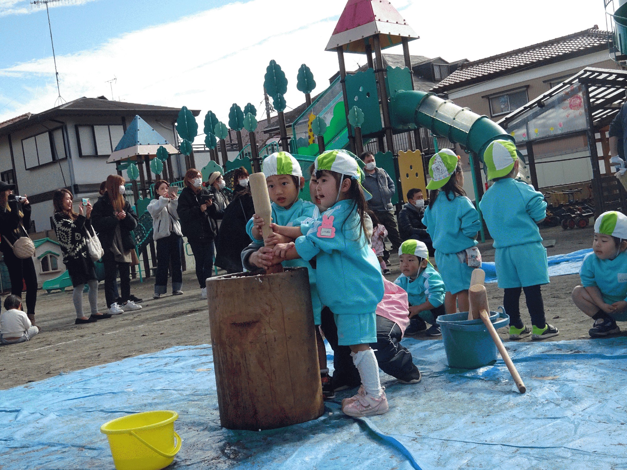 今日はお餅つき会があり、りんご組のみんなも朝からとっても楽しみにしていました☆