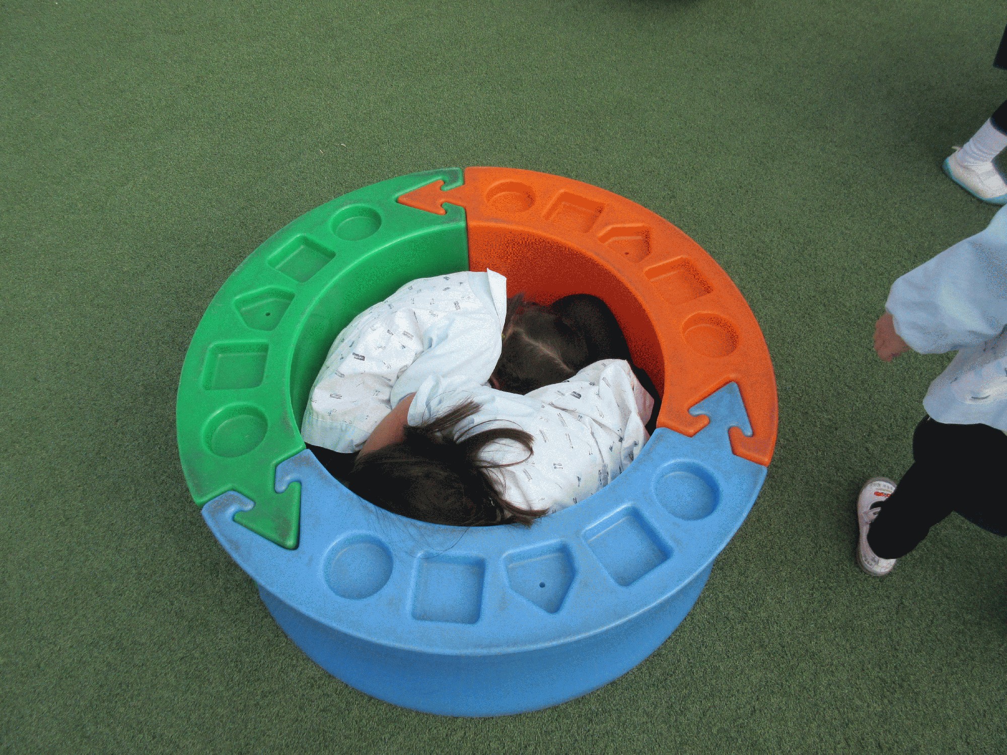 芝生遊びでは寒かったのでドーナツの穴で暖をとるつくしさんもいました。