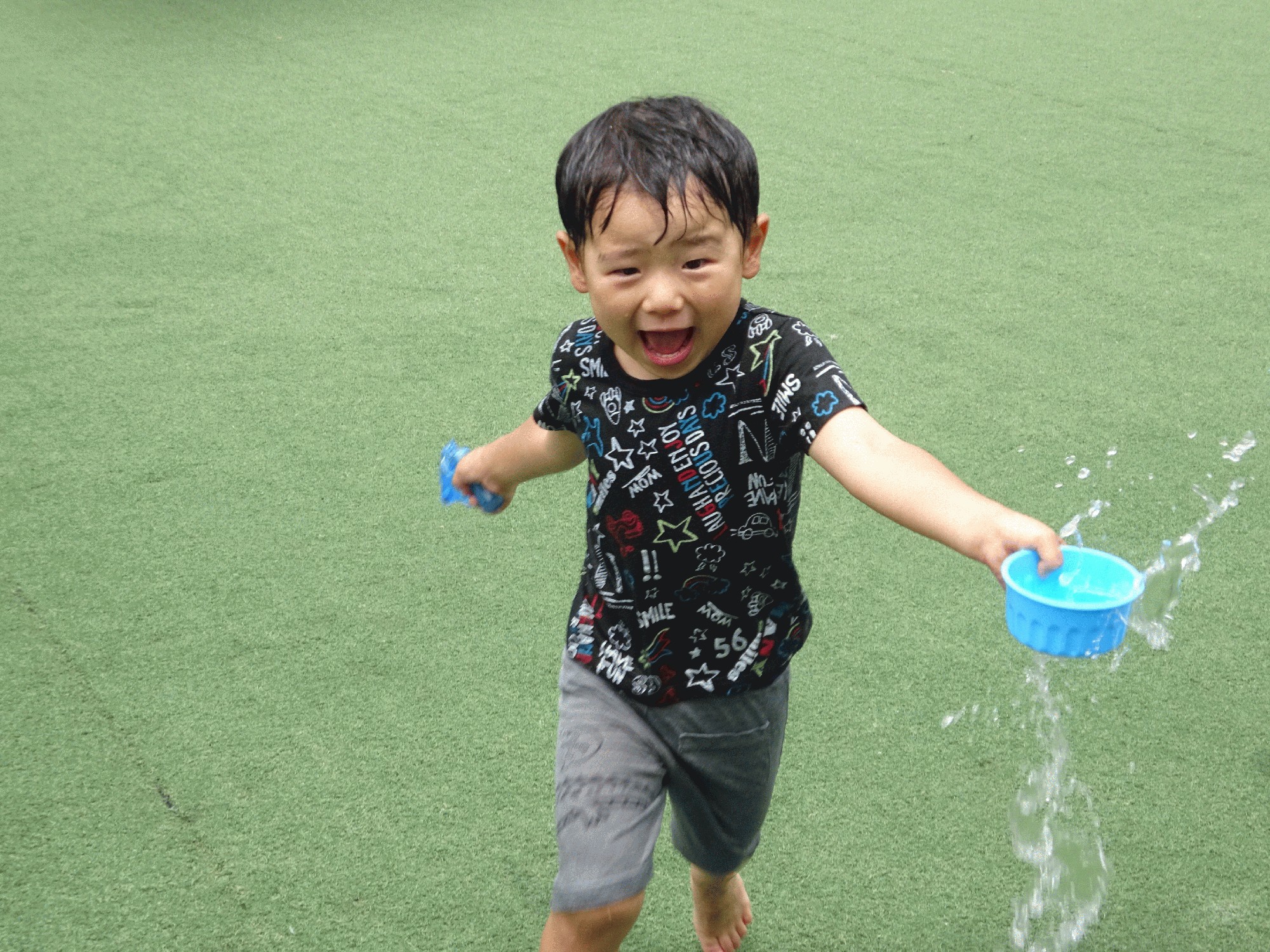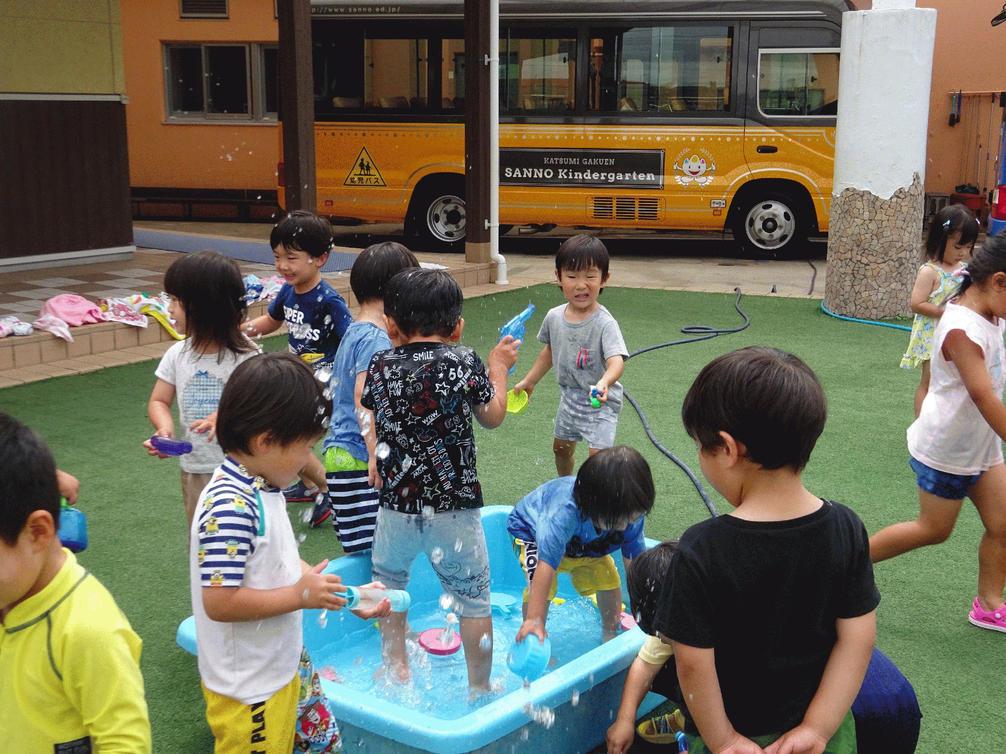 バケツや水鉄砲などおもいおもいに遊びたい