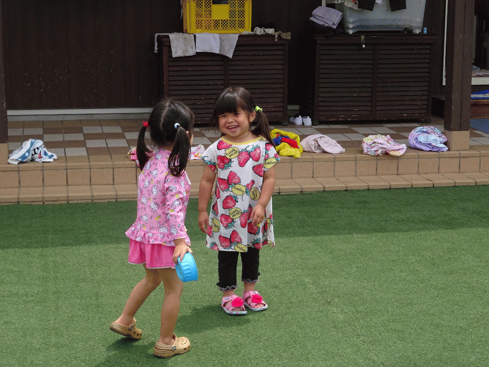 来週もみんなと遊べることを楽しみに幼稚園で
