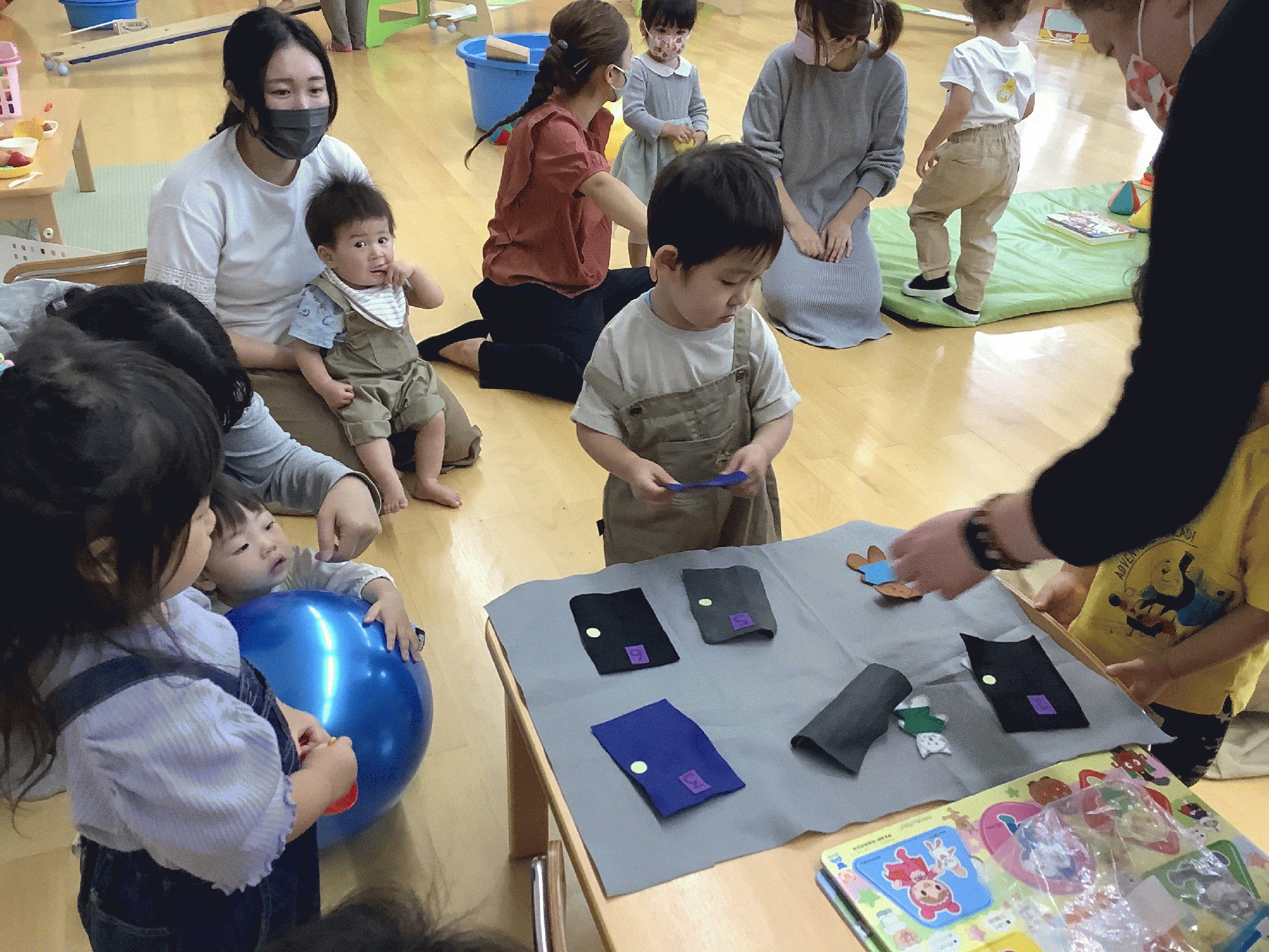 今日は久しぶりのケイティ先生で、みんな嬉しそうでした。動物の親子の絵本を見たり、ケイティ先生手作りの教材で ドア後ろに誰がいるかな?と、めくってみたり、♪ABCsongをうたったり、楽しい時間を過ごしました。