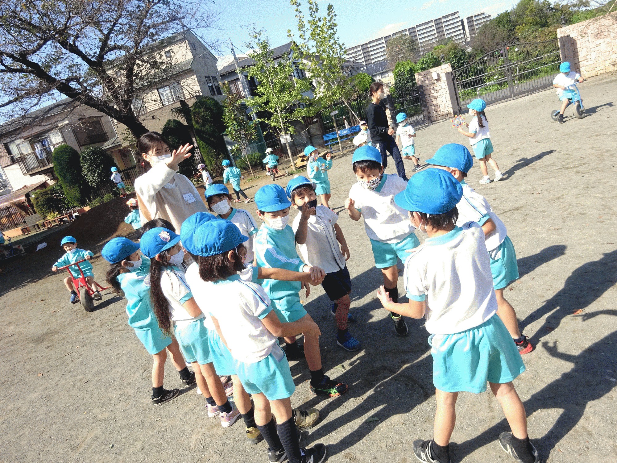 - 秋晴れ 降園前に一緒に遊んだ