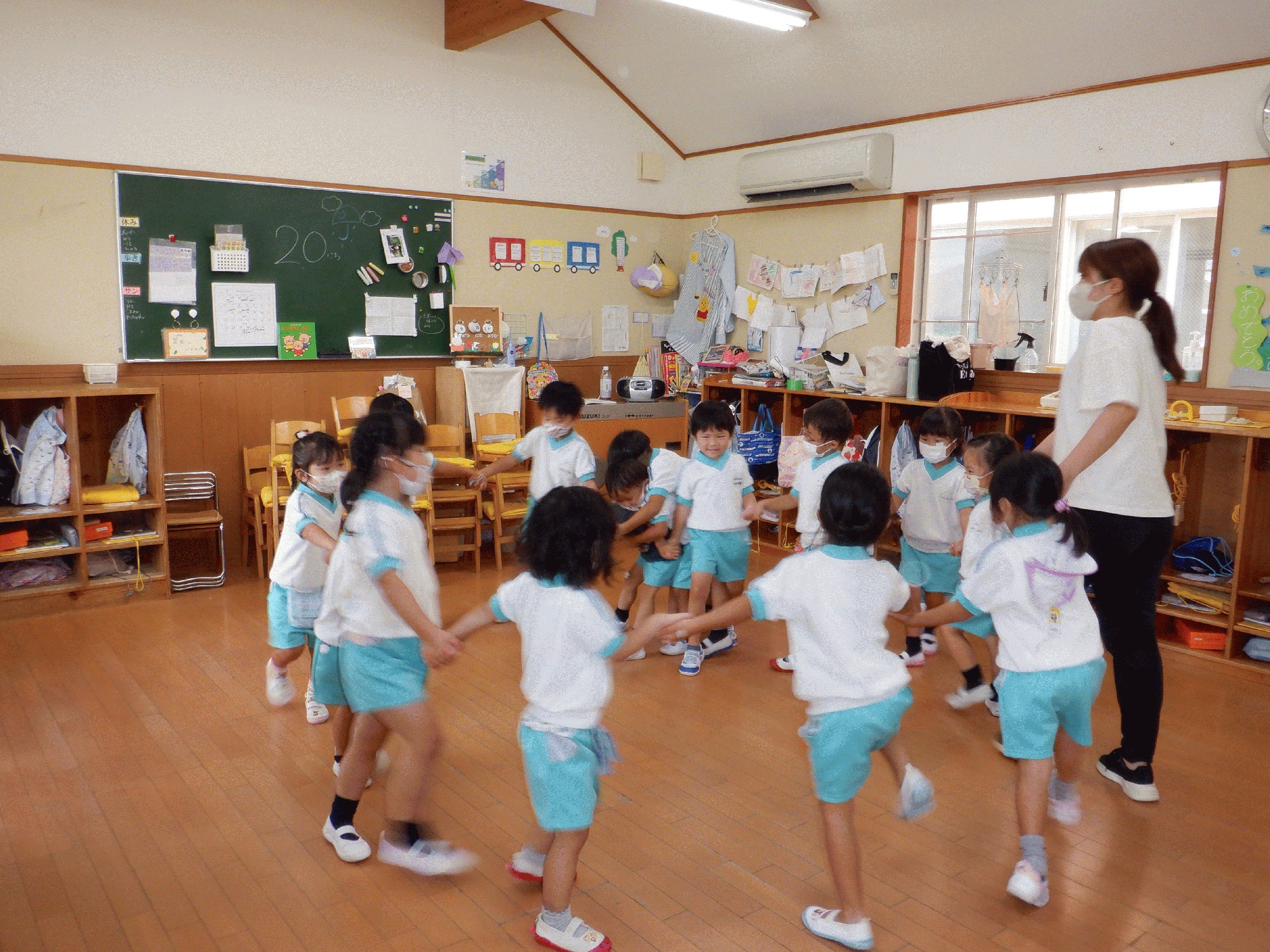 みんなで輪になって、リトミックをしました。