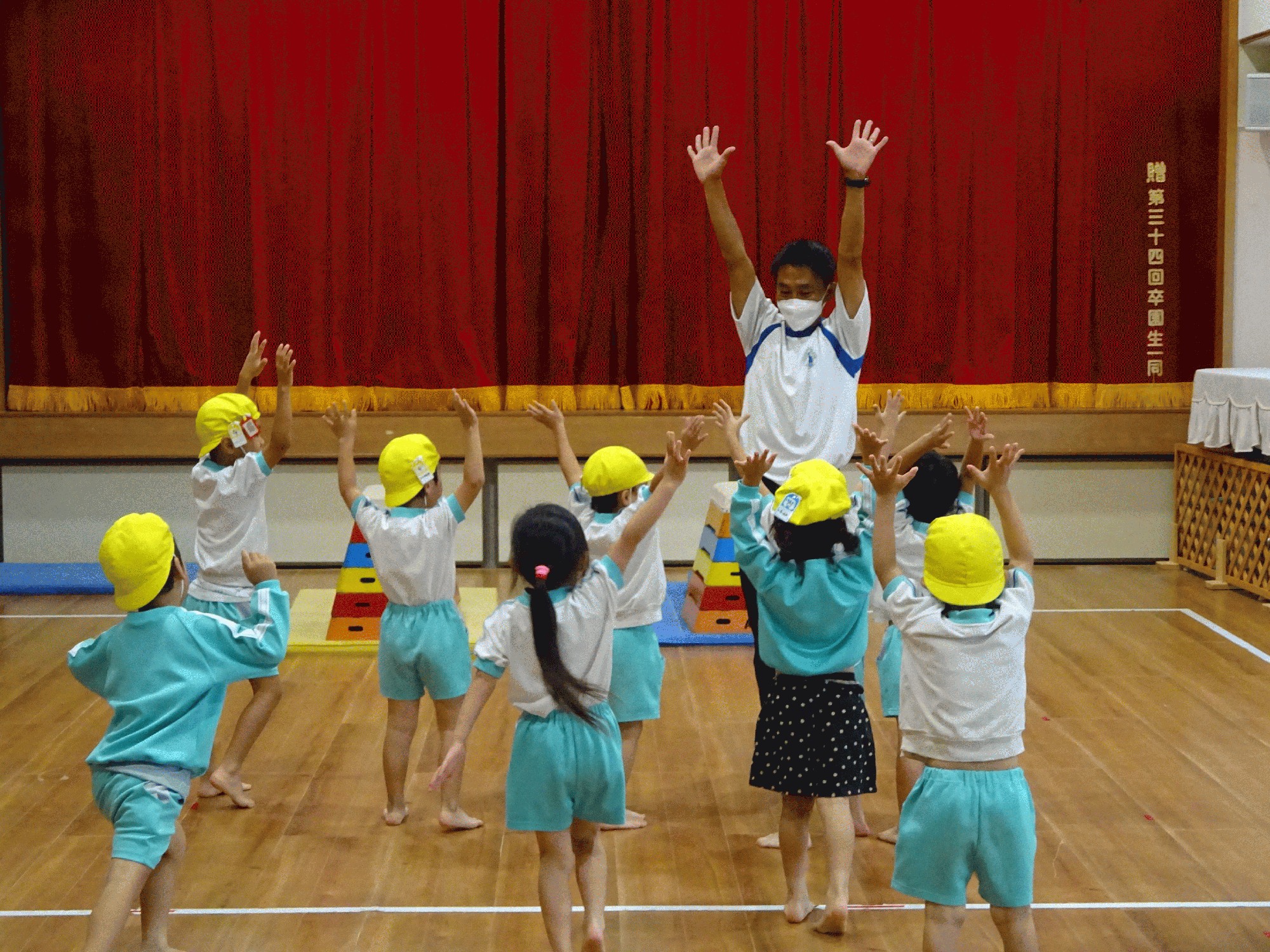 掛け声にみんなでまねをします。