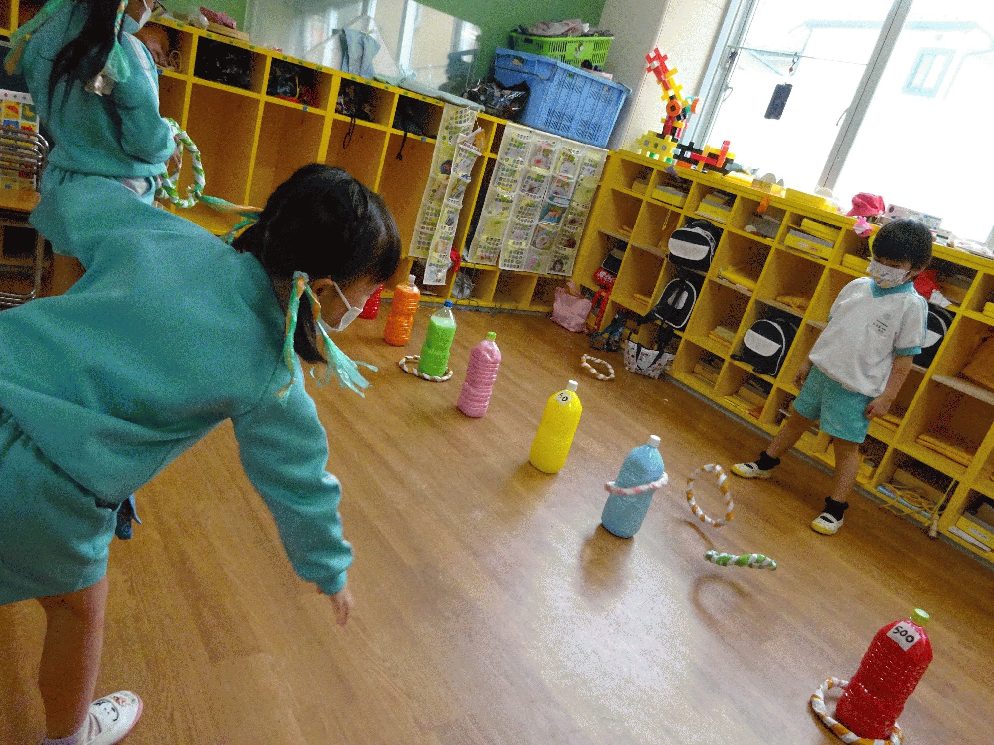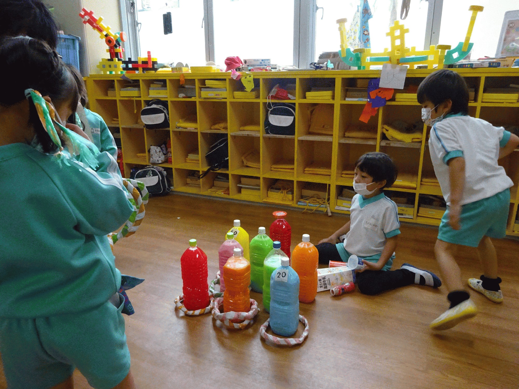 今日は「わなげボーリング」と、新しい遊びも生まれていました!