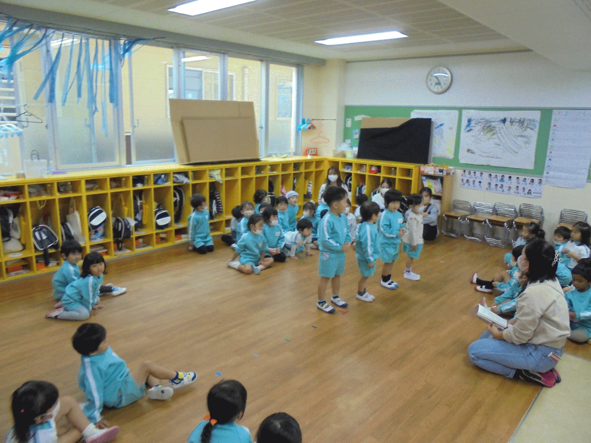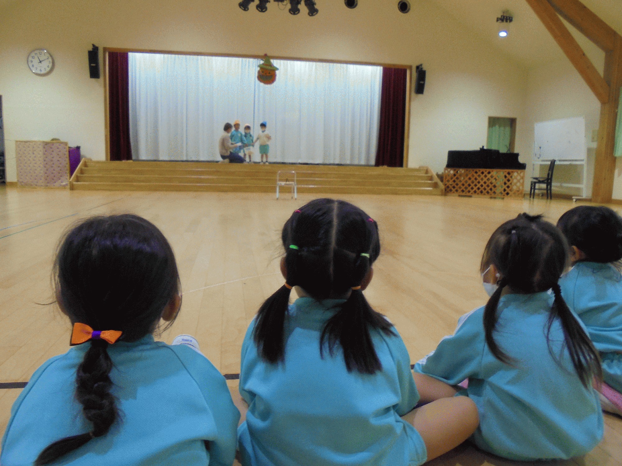 木の子ホールではみかん組がいて木の子ホールでもお客さんありの練習をしました。