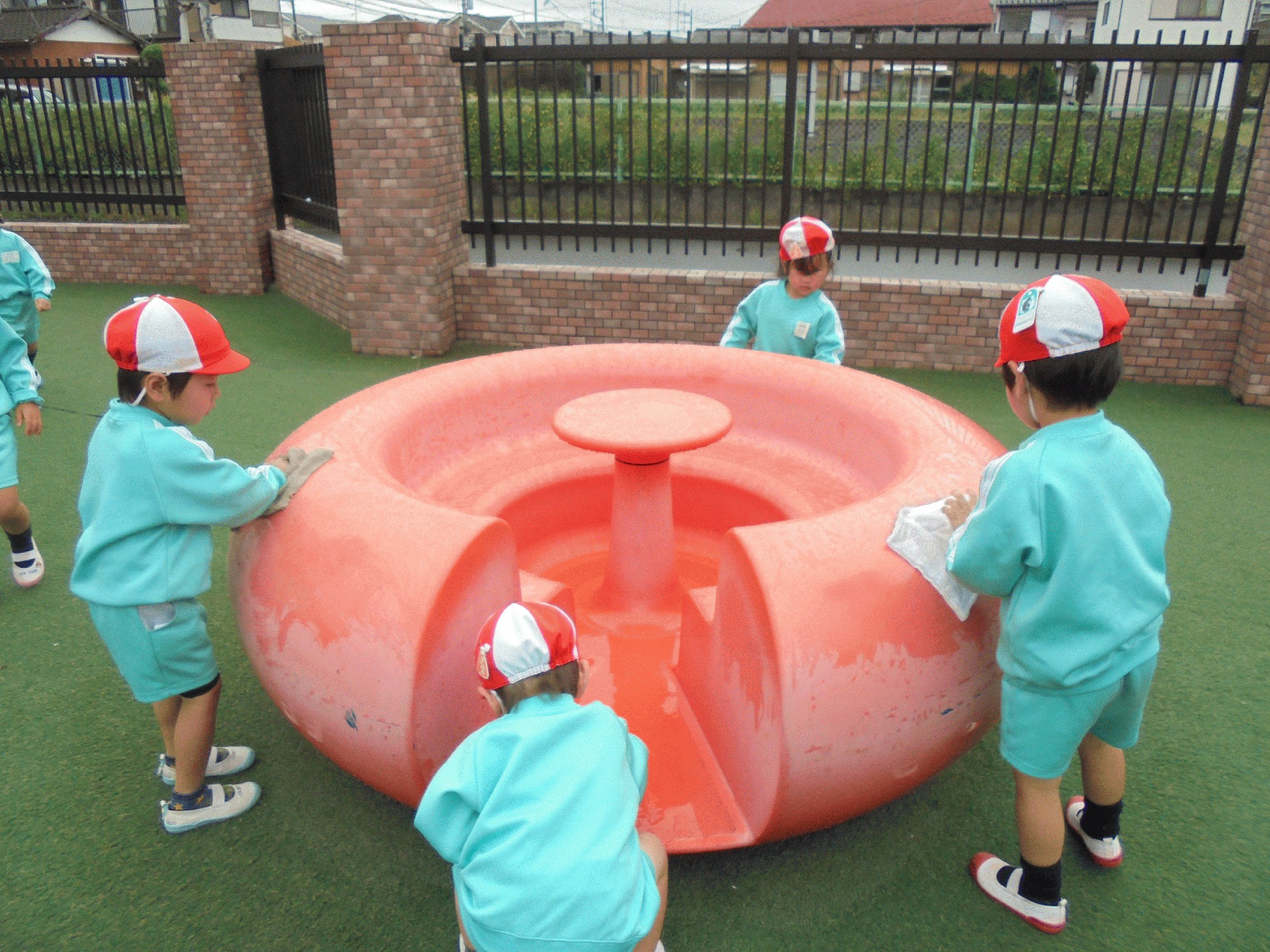 まずは遊具が濡れてる為全員で遊具を拭く作業から始まりましたが拭いても拭いても雨で濡れて…の繰り返しで諦めそのまま拭く作業おしまいにして遊びました。