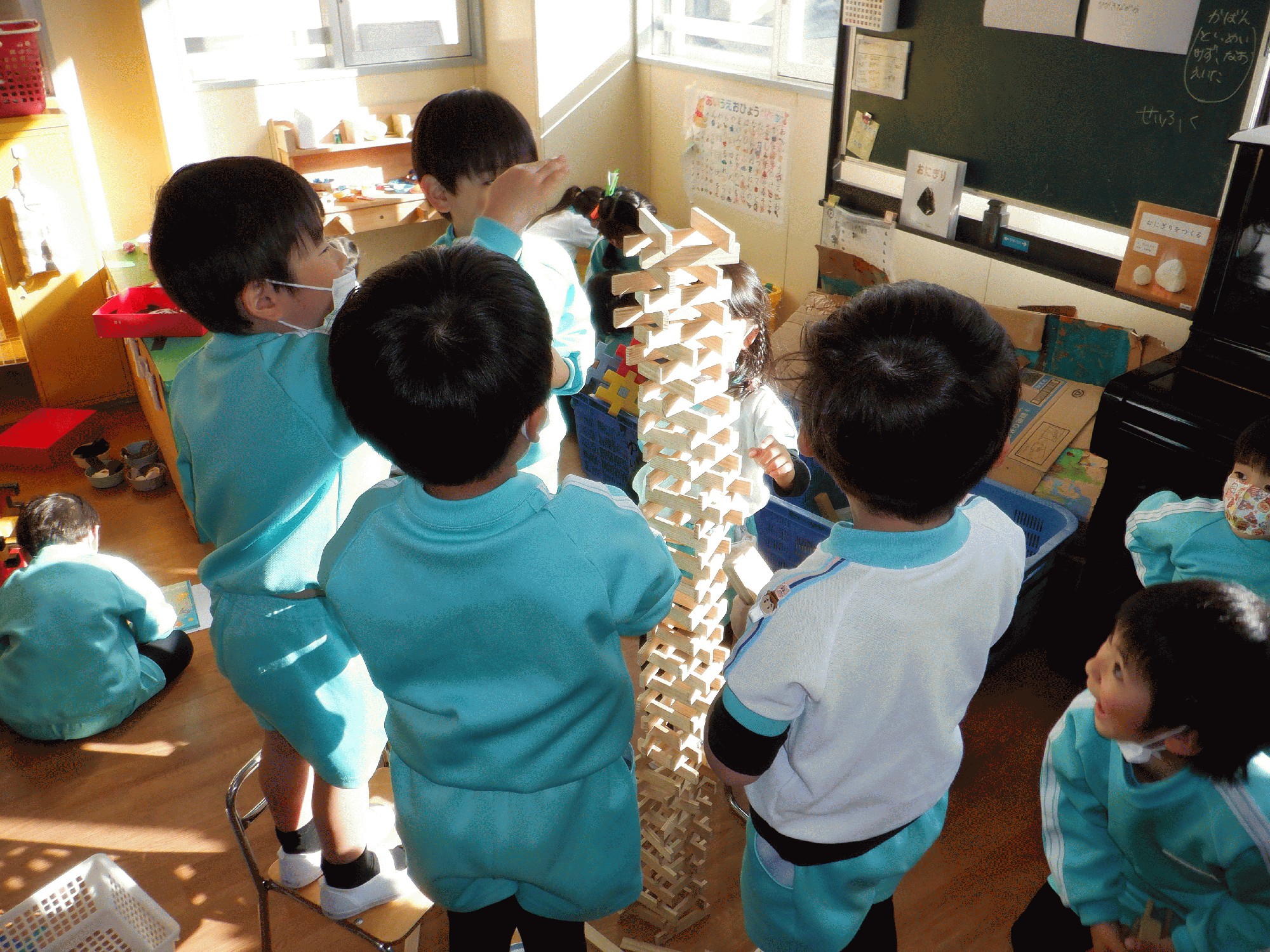 午後はお部屋でカプラを高く積み上げたり、