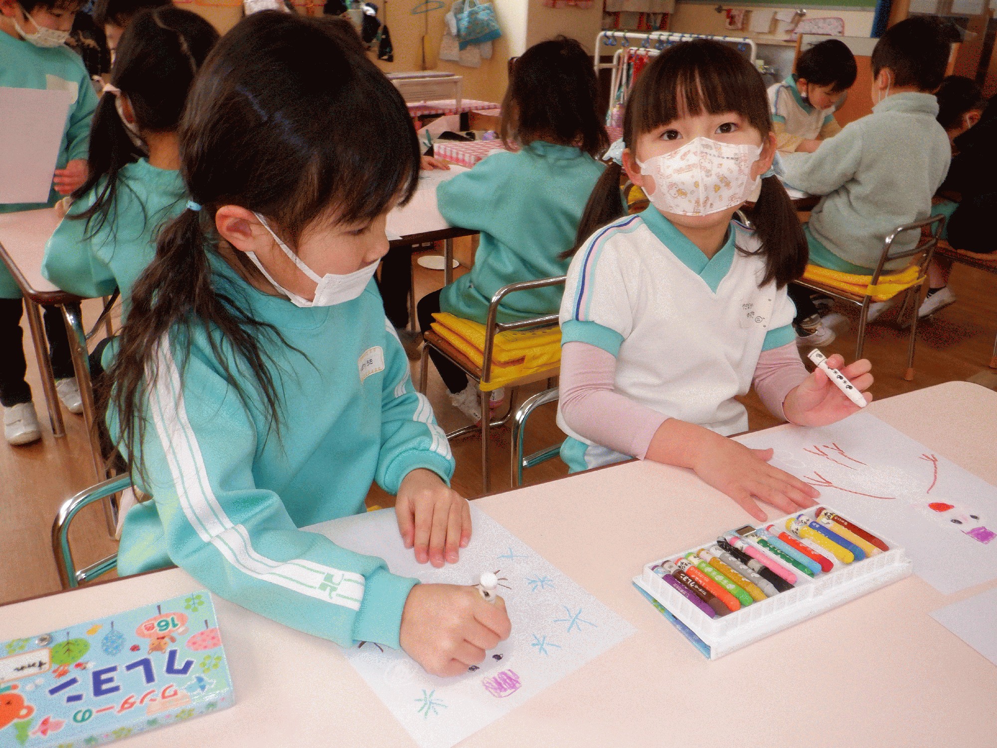 子どたちの絵を見ると、ゆきだるまや幼稚園に