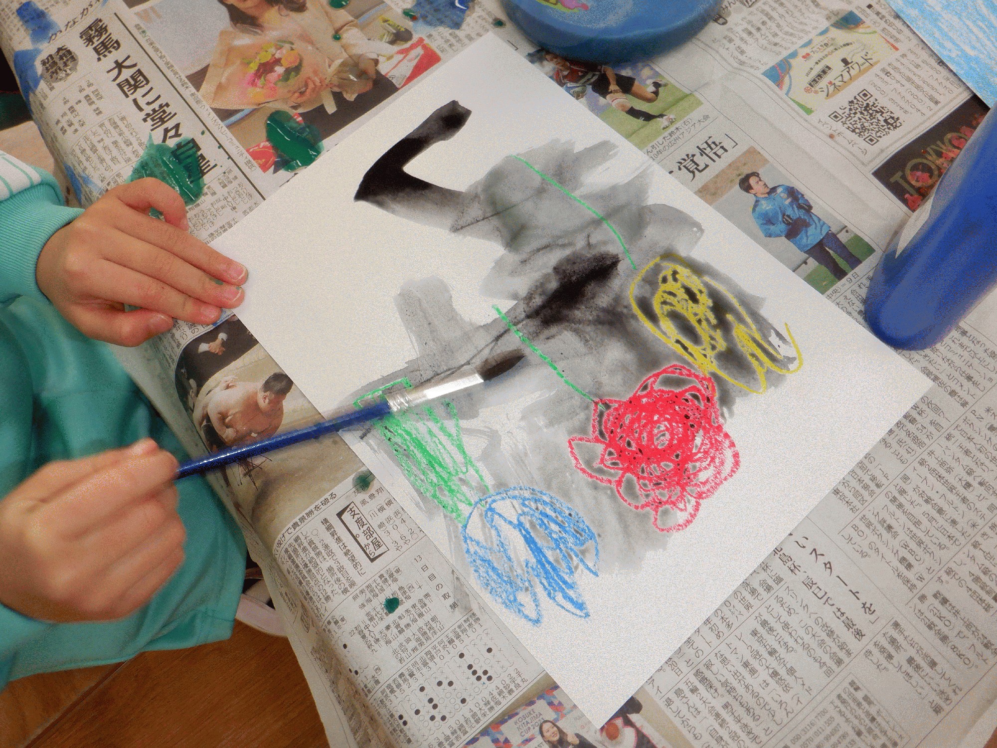 その後、好きな色で絵の具を塗ってみると、
